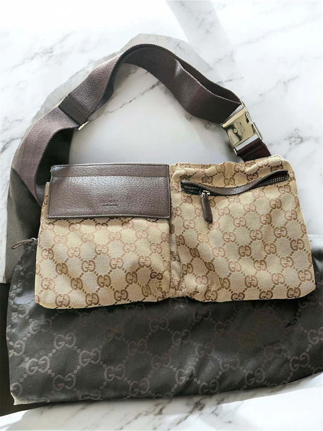 Selling for a friend she needs cash she’s going home Selling a Gucci GG canvas waist bag in brown. It's in great condition and features the classic GG monogram pattern. Perfect for adding a touch of luxury to your everyday look!
