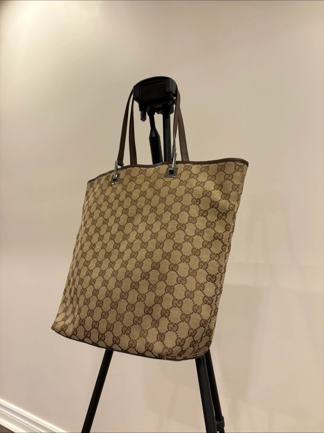 Stylish, authentic vintage Gucci tote that goes with any outfit! Can easily carry a 13” laptop so it’s great as a work bag or an everyday tote for someone who likes to carry more than just the essentials. Originally purchased from a reputable luxury consignment business in Canada. Still in very good vintage condition (8/10), but there is some minor wear pictured in the corners.