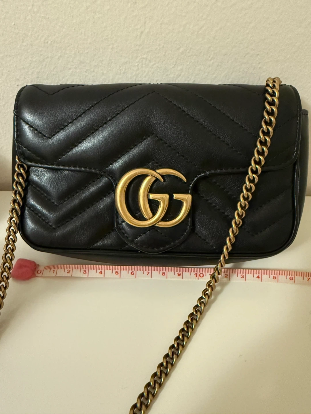 Selling a cute Gucci GG Marmont mini shoulder bag! It's in great condition and perfect for carrying your essentials. The bag features the iconic GG logo and a chain strap. It's a stylish accessory for any outfit! ( have receipts, dust bag )