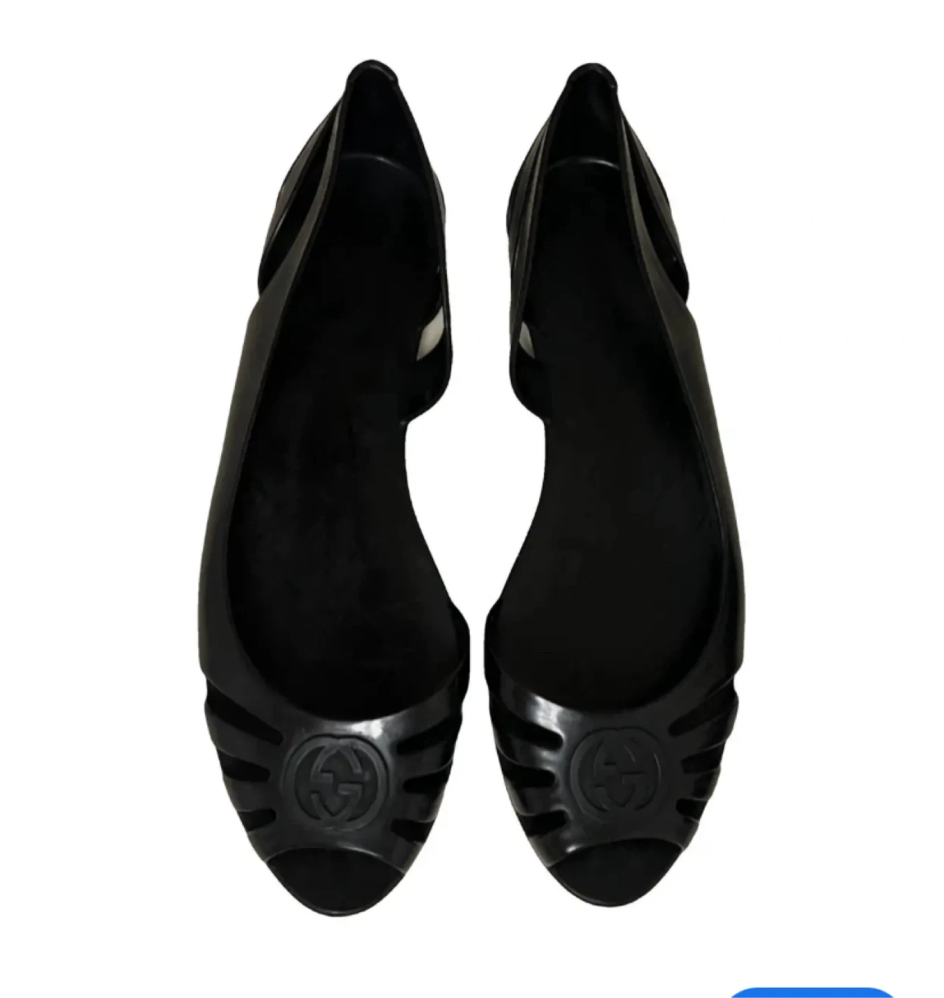Selling a pair of Gucci jelly flats in black. They have the iconic Gucci logo on the front. Size 7. Perfect for summer!