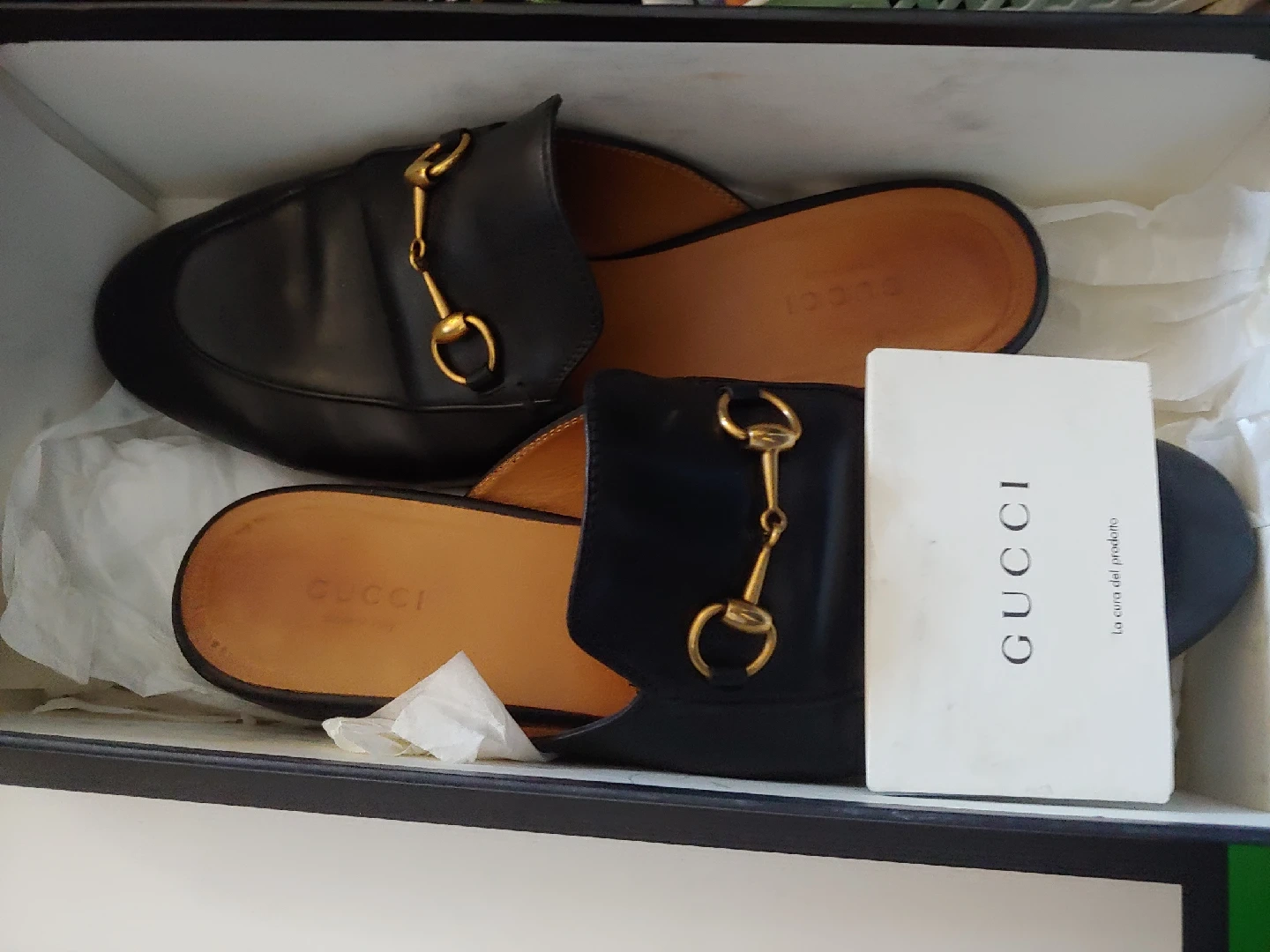 Selling a pair of Gucci leather mules. They are a size 8 and come with the original box. They are in great condition and would be a great addition to your wardrobe!
