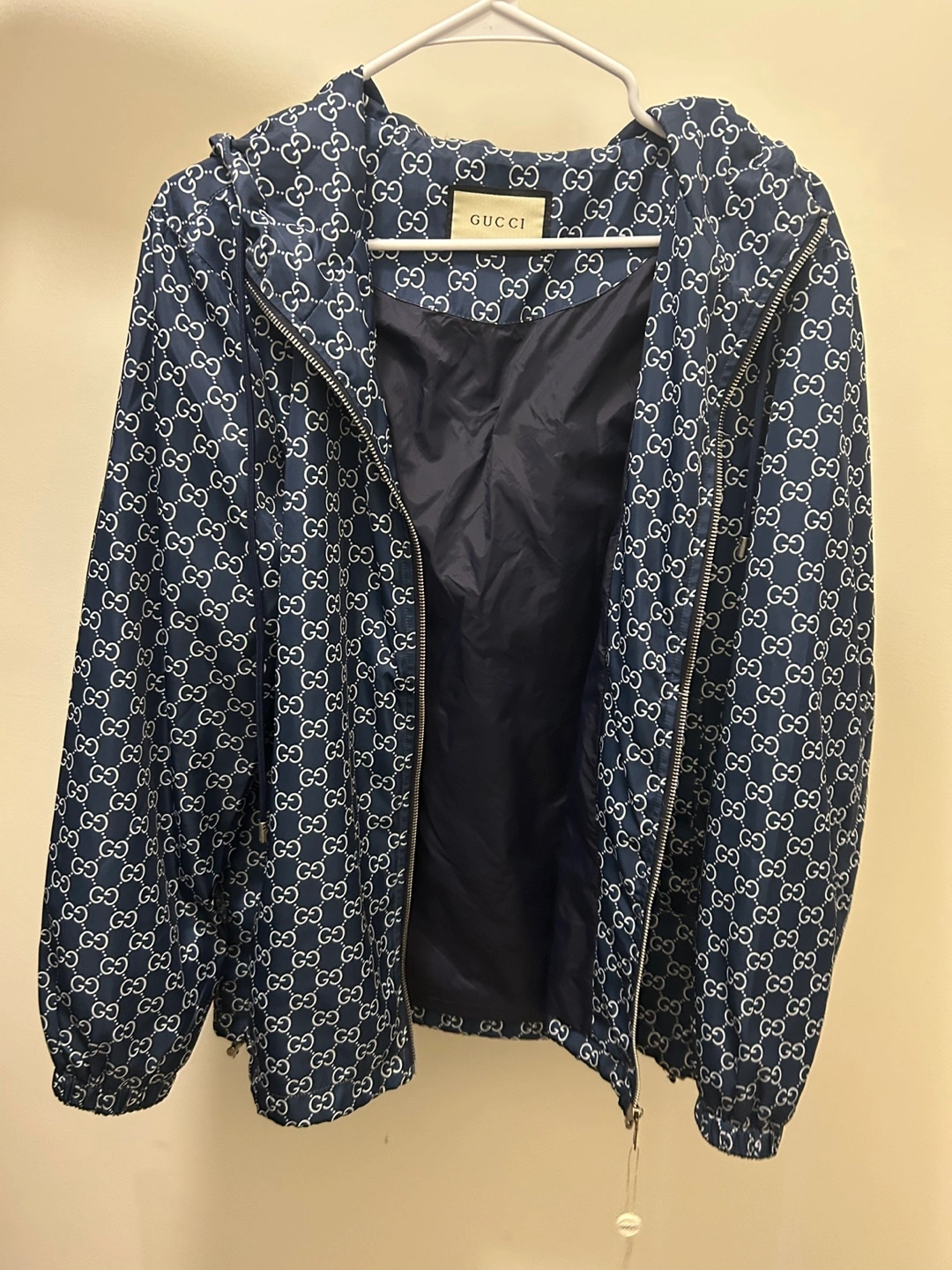 Selling a Gucci jacket with the iconic GG print. The jacket is in great condition and ready for a new home!