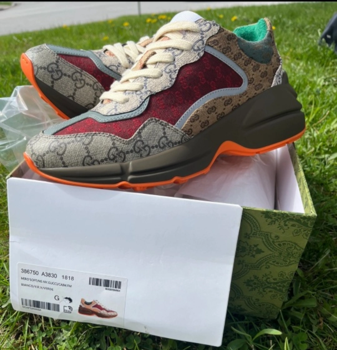 Selling a pair of Gucci Rhyton GG sneakers! These are a stylish and unique pair of shoes that will definitely make a statement. They come with the original box. Perfect for adding a touch of luxury to your everyday look
