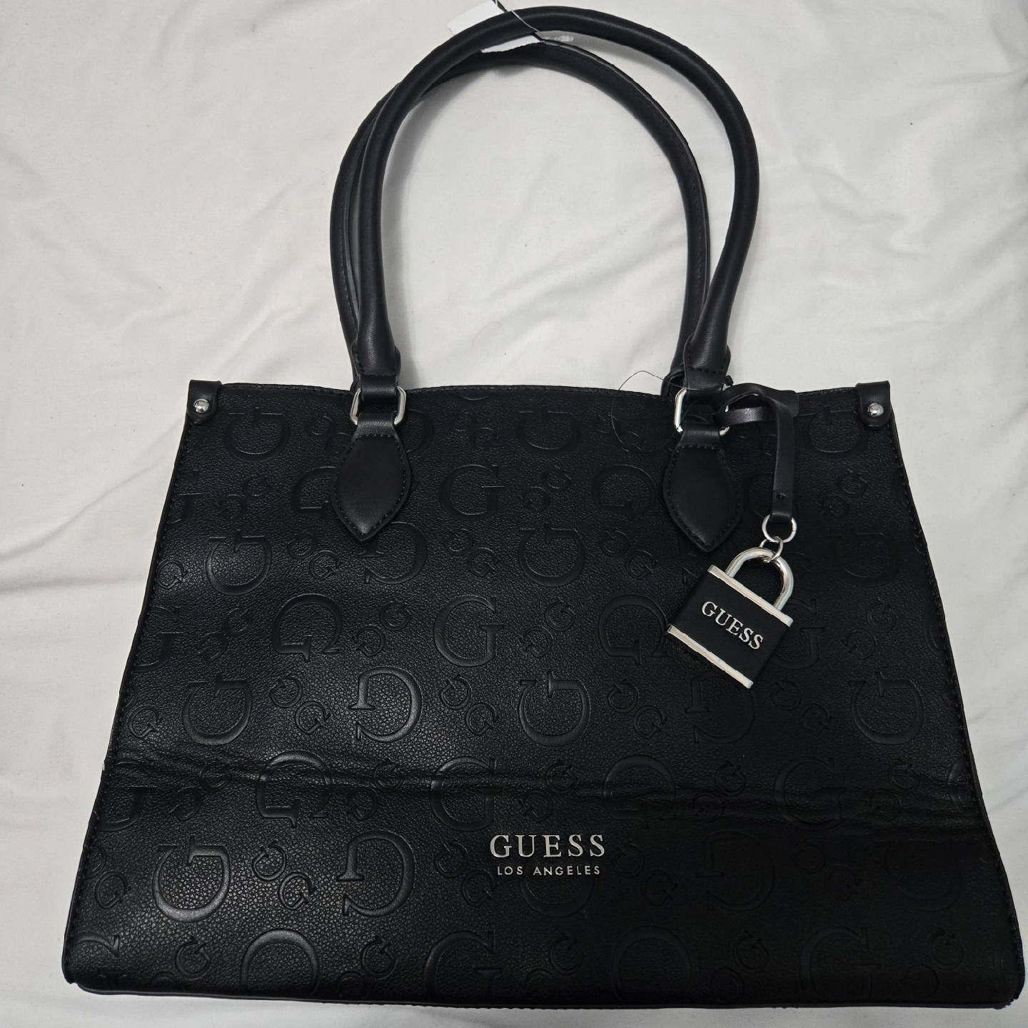 This is a black Guess bag with an embossed pattern. It's a stylish and practical bag for everyday use.