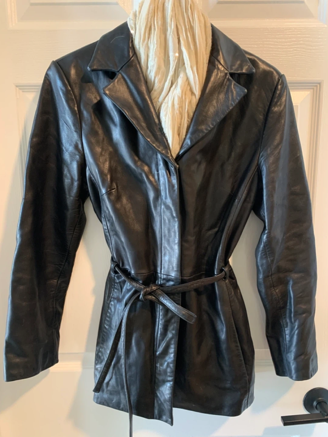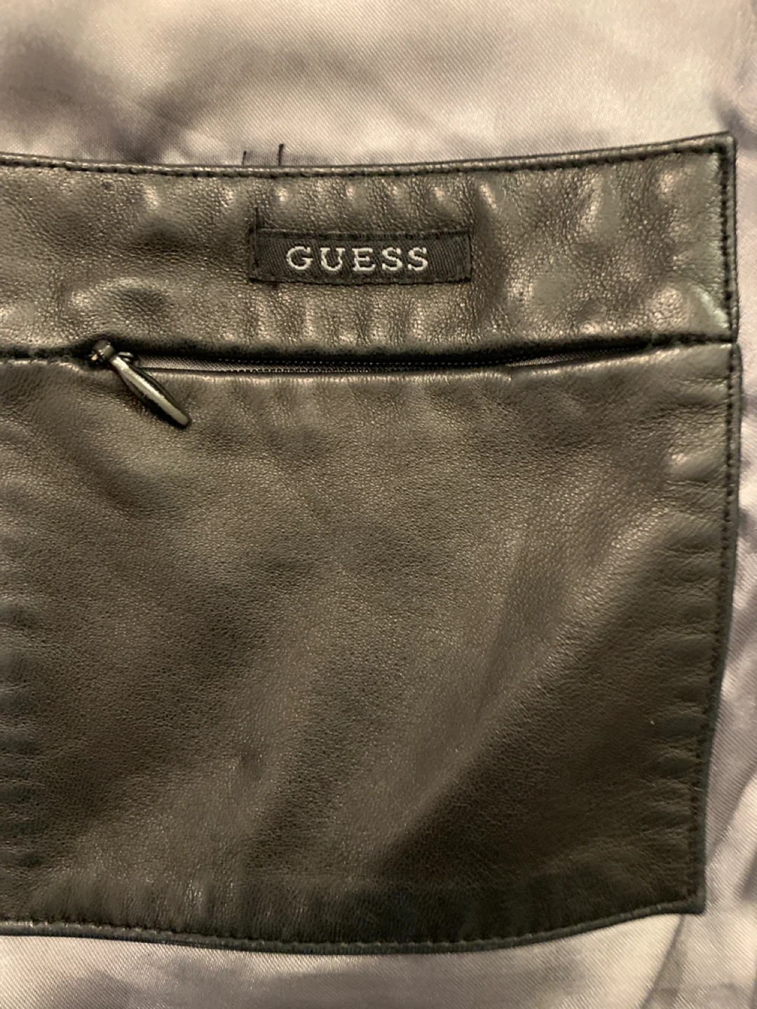 Very soft leather jacket from Guess! It has a classic design with a tie around the waist.