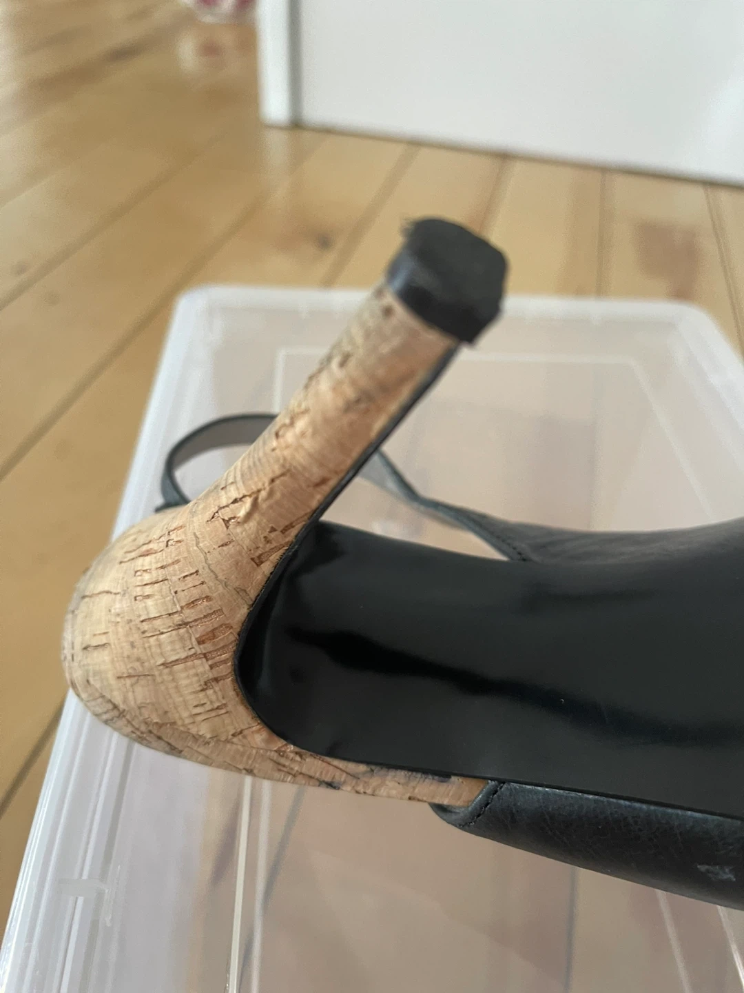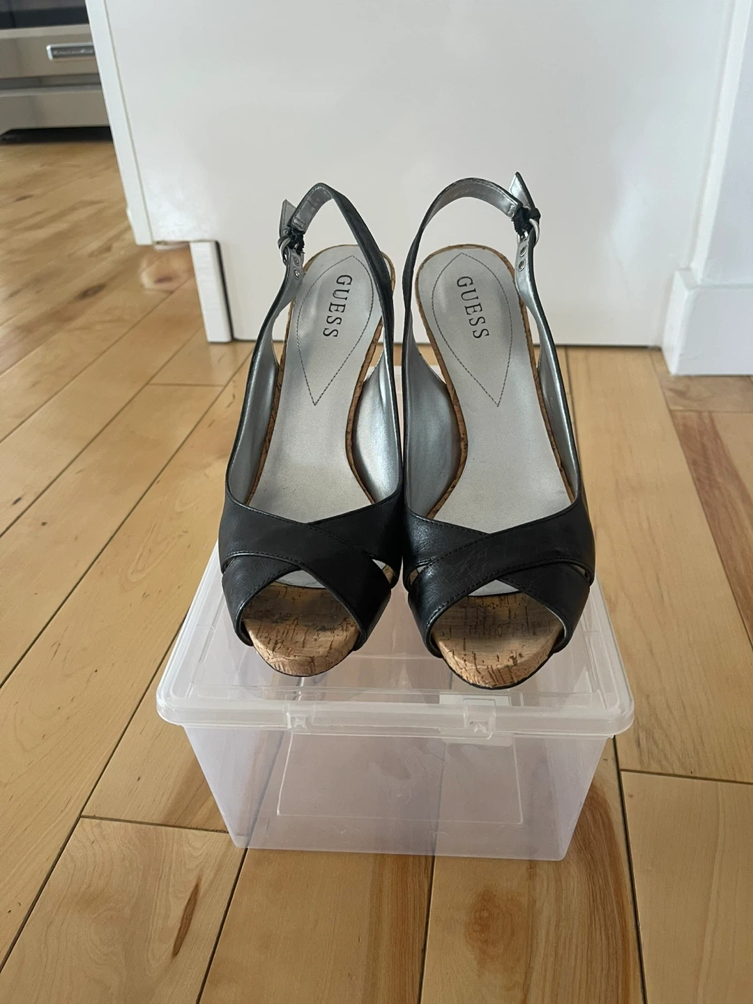Selling a pair of Guess leather slingback heels in black! They are a size 9 and have a cork heel. These heels are perfect for a night out or a special occasion