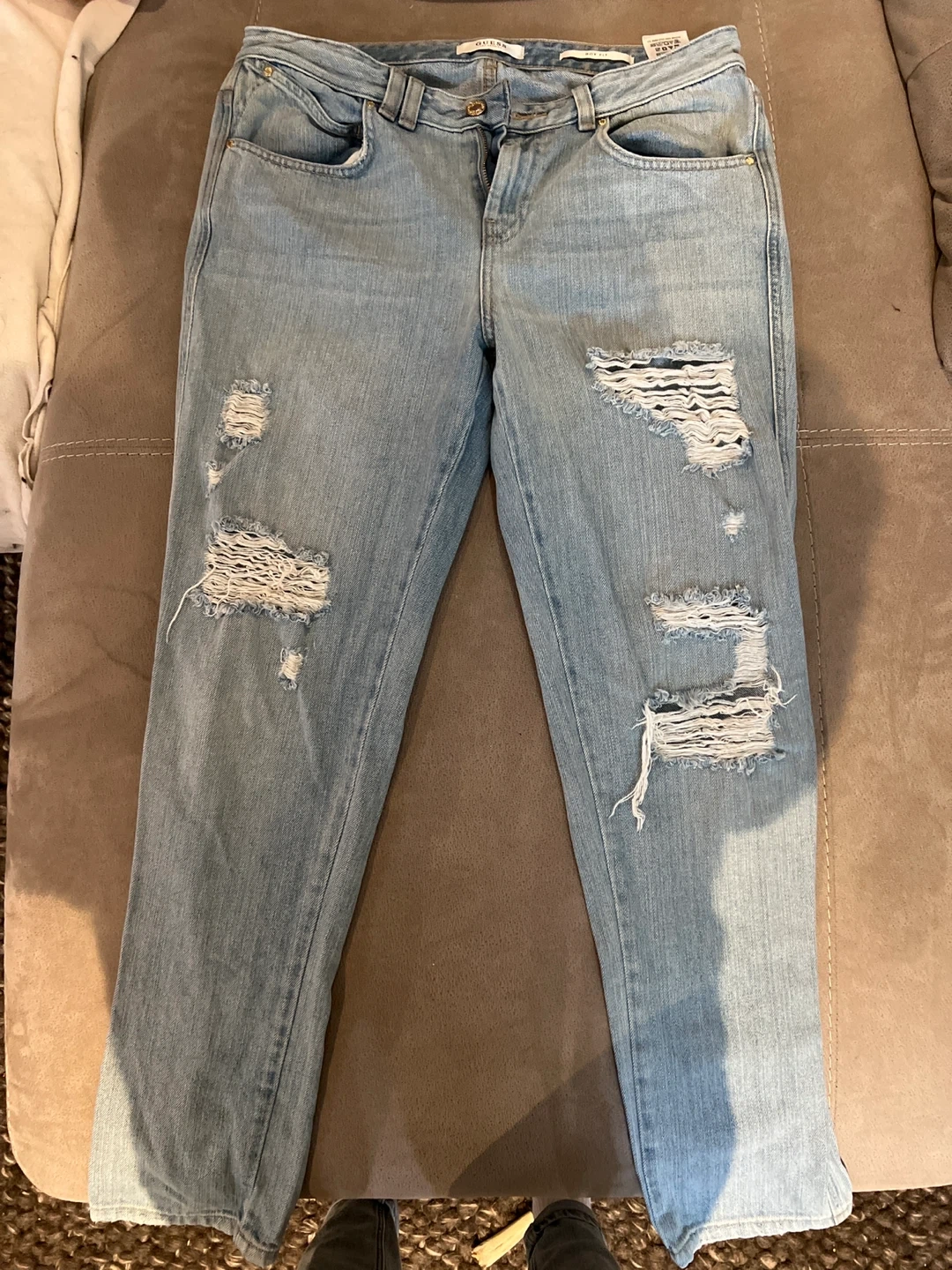 Selling a pair of Guess 'Boy Fit' jeans! They have a ripped design and are like new. Size 28