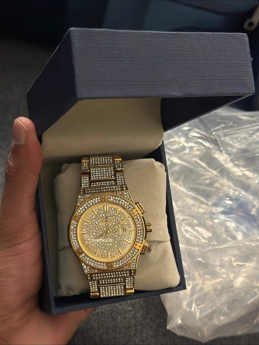 Selling a beautiful Guess watch with a gold finish and crystal detailing! It comes with its original box, making it perfect as a gift or a treat for yourself. It's in great condition and ready to wear!