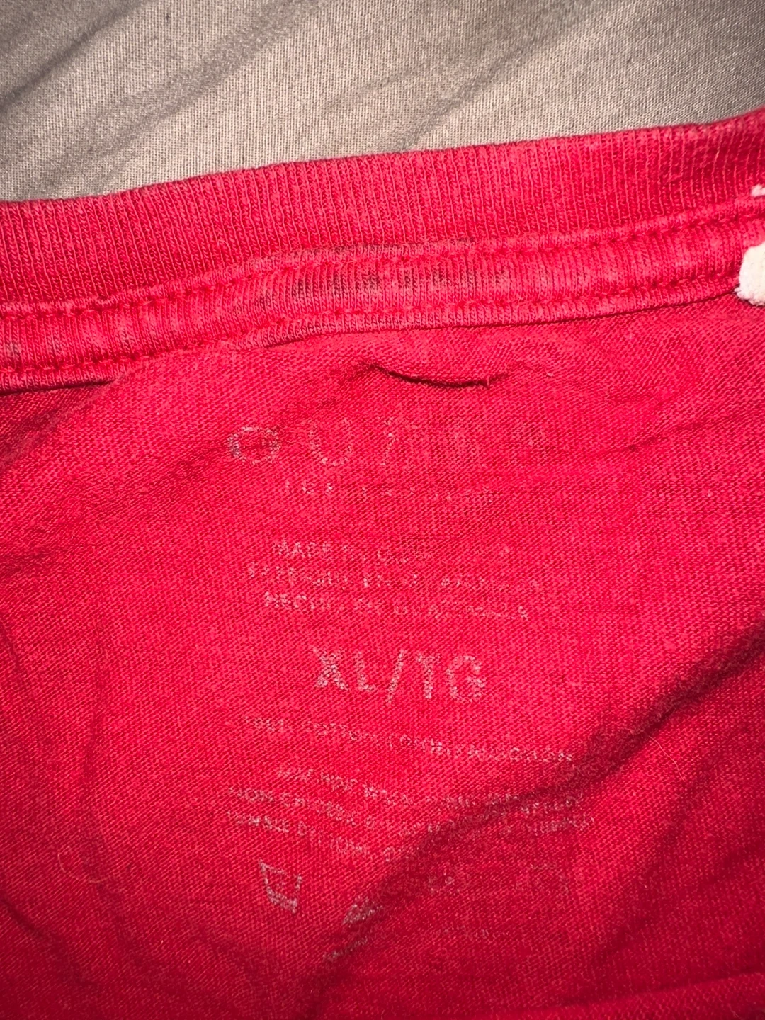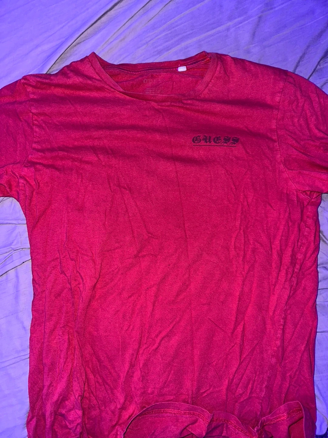 Selling a red Guess t-shirt in size XL. It's in good condition and ready for a new home! The material is soft and comfortable, perfect for casual wear