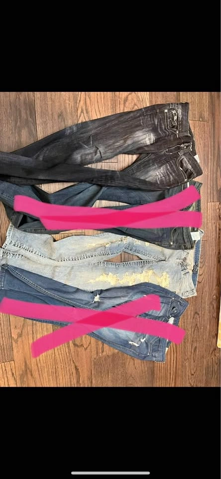 Size 27 Guess Jeans black ones and silver jeans (light blue) are size 25. In great condition pickup Aurora. $25 each