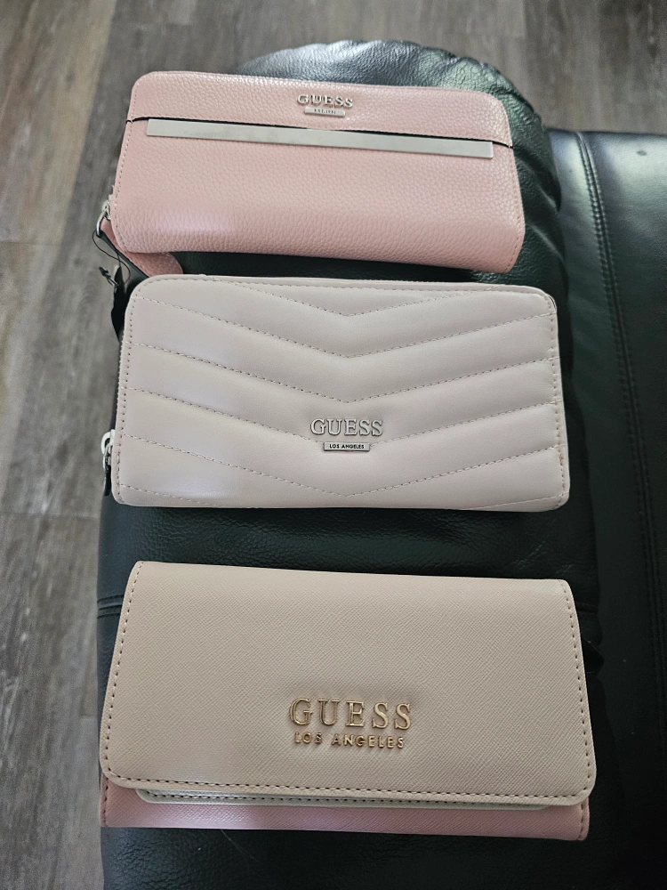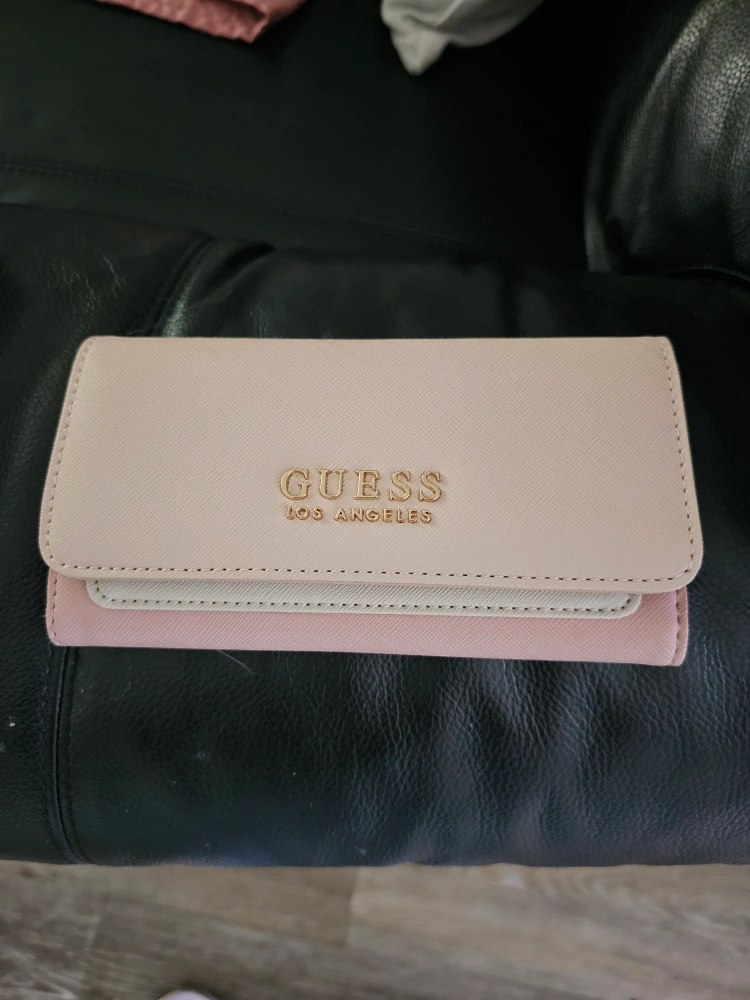 Selling a gently used Guess wallet in a light pink colour. It's in great condition and has lots of space for cards and cash. Perfect for everyday use!