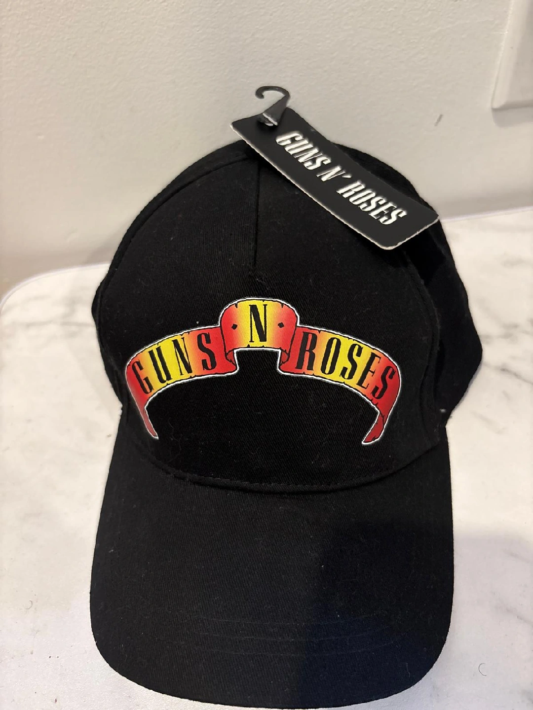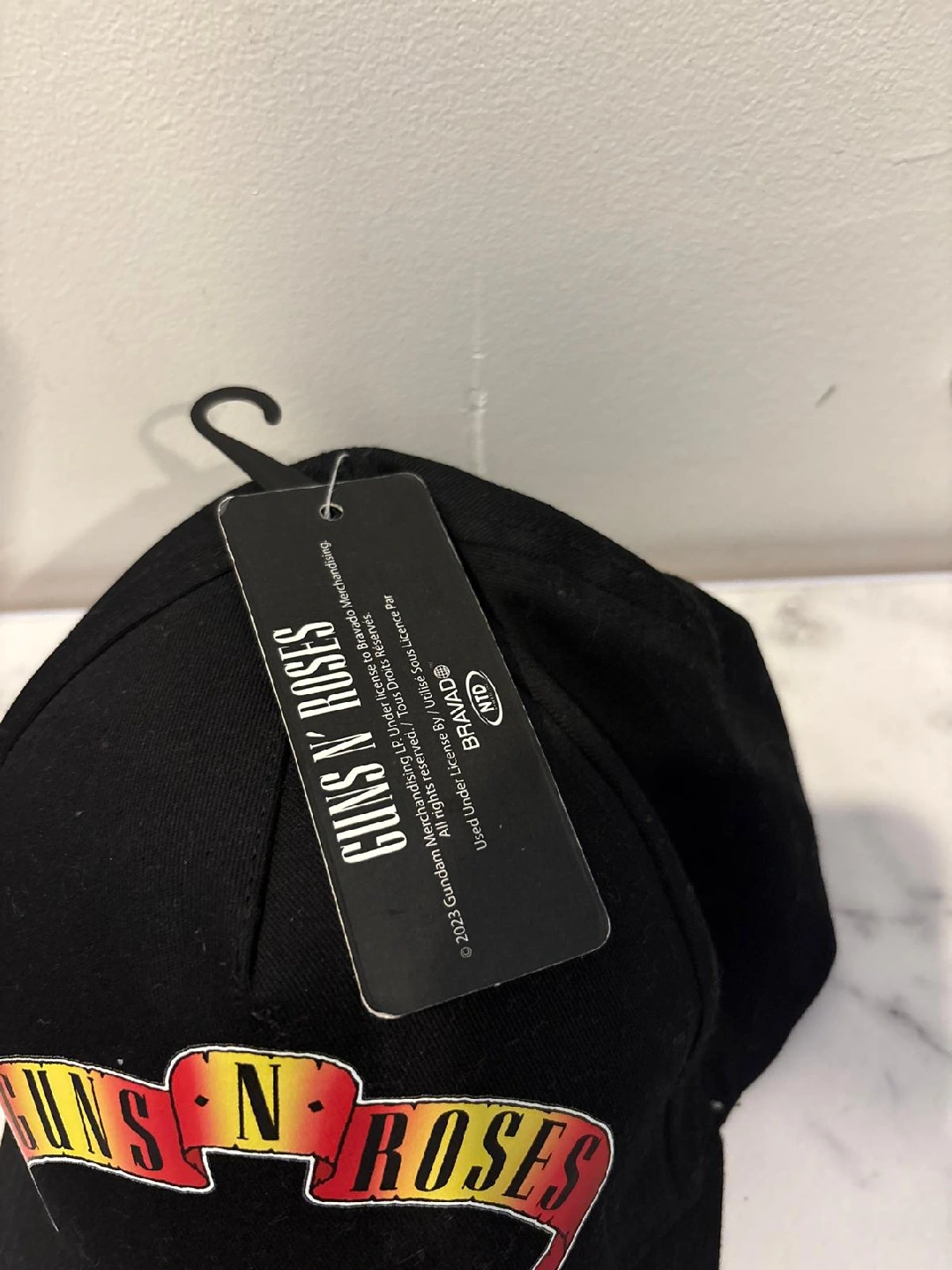 Check out this brand new Guns N' Roses baseball cap! It's black with the iconic Guns N' Roses logo on the front. Still has the original tags attached, so it's in perfect condition. A great accessory for any fan!