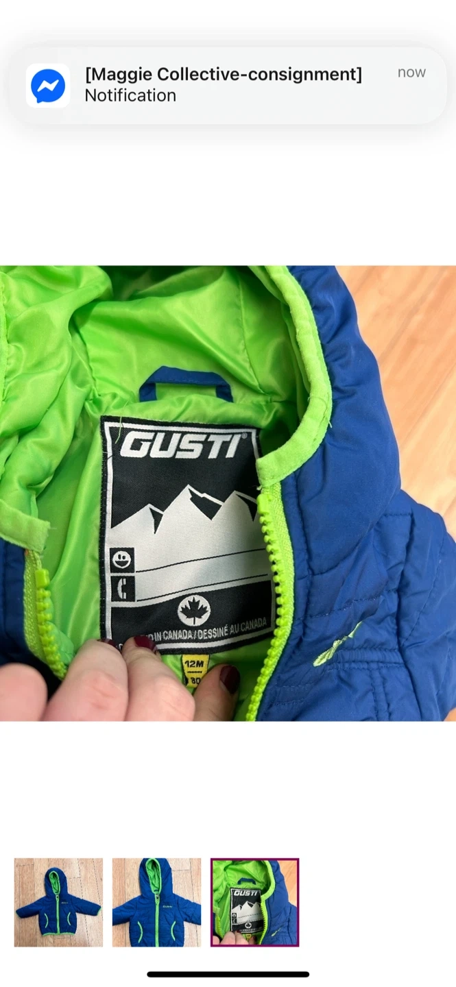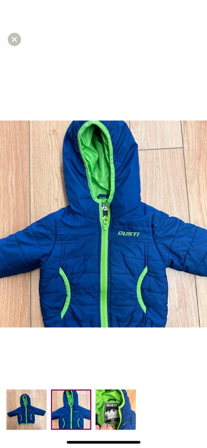 Gusti brand. Zip up spring/fall lightweight puffer jacket. Blue with green accents. Size 12m. Brand new condition $15 Pickup between kincardine & ripley or I can arrange delivery in port Elgin-Owen sound, walkerton-Durham, wingham-listowel-kw/cambridge, goderich-bayfield, Woodstock & Arthur-Orangeville-Newmarket-Lindsay-Peterborough AREAS.