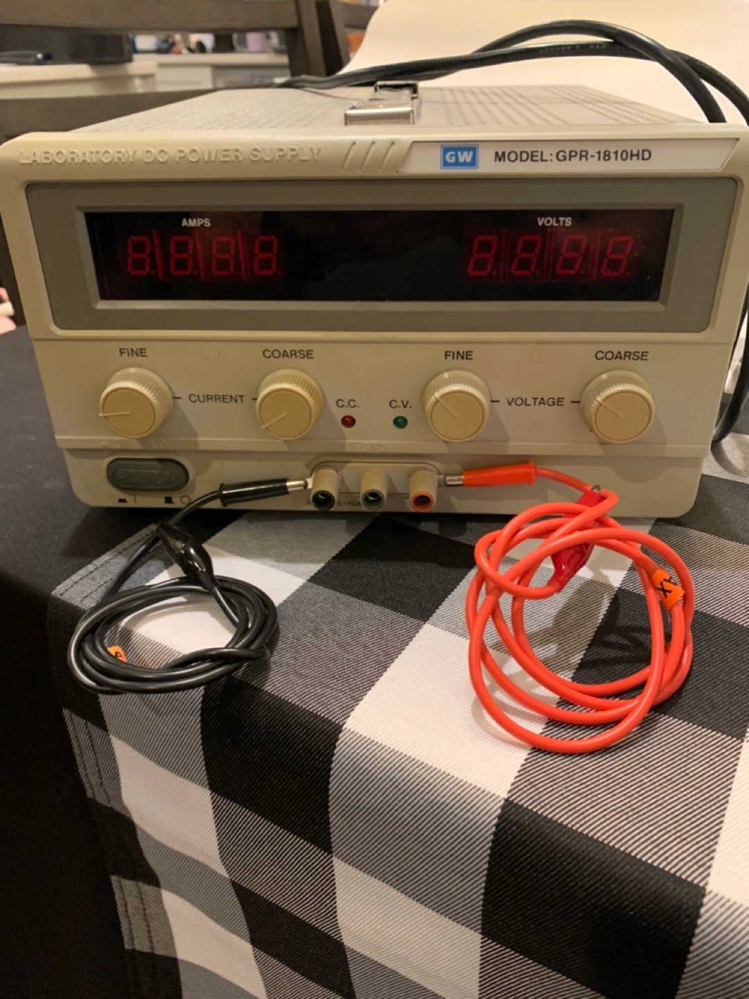 Laboratory DC power supply. Features adjustable voltage and current. Includes power cord and test leads. Good condition.
