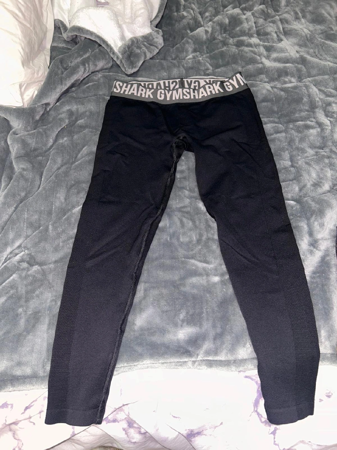 Selling a pair of Gymshark leggings in black! They are a size medium and in great condition. The waistband features the Gymshark logo. Perfect for workouts or everyday wear!