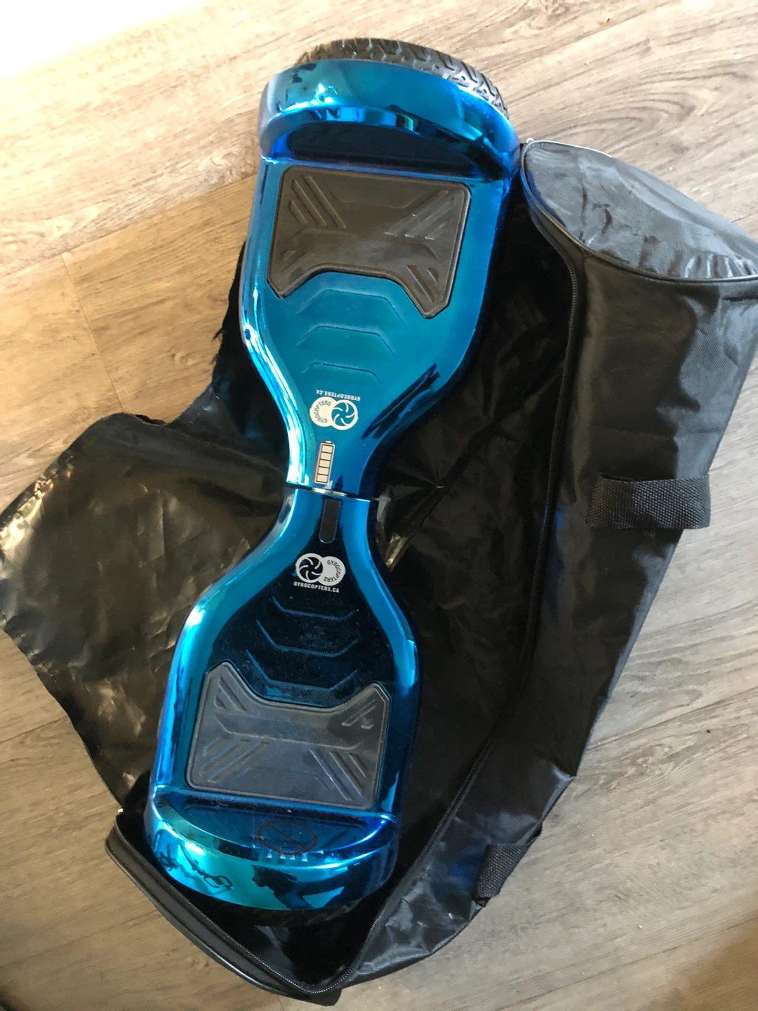 Selling a blue GyroCopter hoverboard. It comes with a carrying bag for easy transport. Great for getting around!