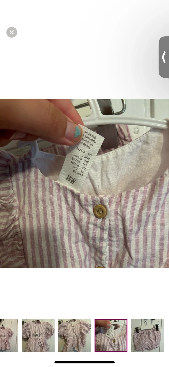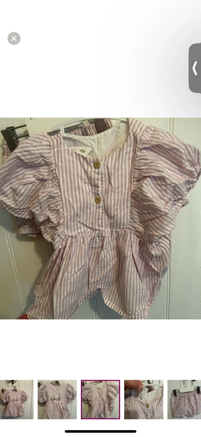 H&M brand. 2pc matching set of puff sleeve top and shirts. Purple & white striped with embroidered floral print. Size 9/12m. Brand new condition $13.50 Pickup between kincardine & ripley or I can arrange delivery in port Elgin-Owen sound, walkerton-Durham, wingham-listowel-kw/cambridge, goderich-bayfield, Woodstock & Arthur-Orangeville-Newmarket-Lindsay-Peterborough AREAS.