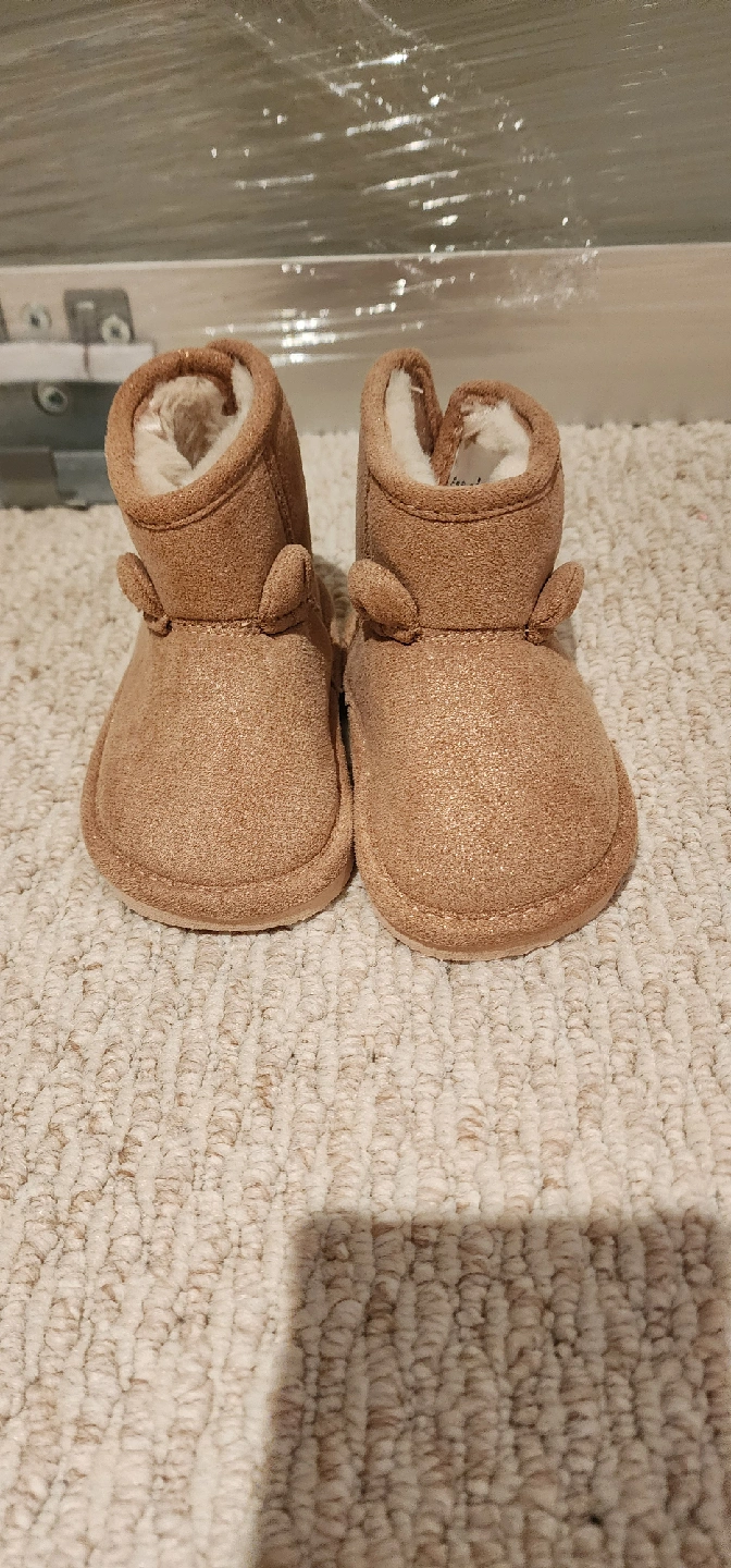 These adorable baby boots are new, never worn. Perfect for those chilly days! Size 4-5 baby size
