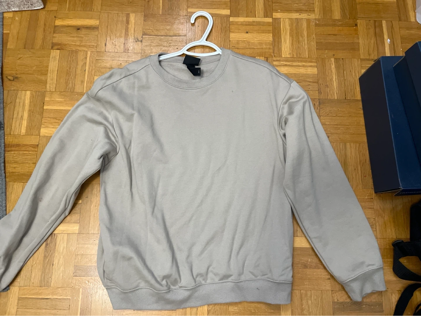 Selling a beige crewneck sweatshirt from H&M. It's in great condition and ready for a new home. Perfect for layering or just lounging around!