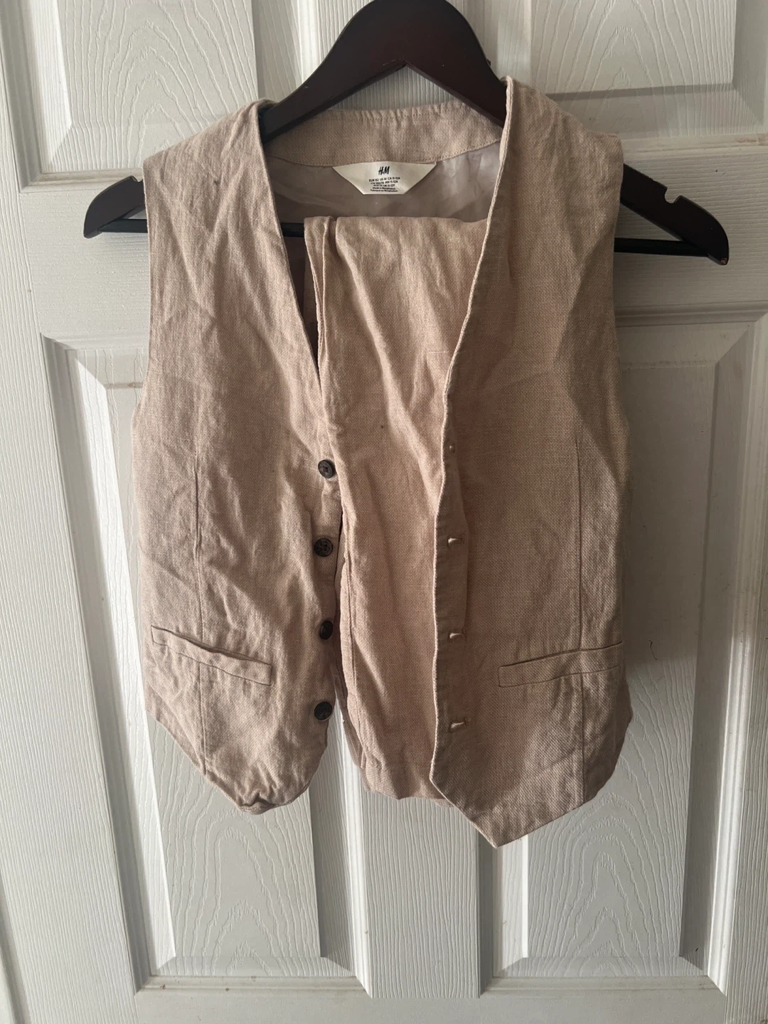 Selling a beige vest from H&M! It's a linen blend, perfect for warmer weather. Great for layering or wearing on its own 11/12 like you were once for communion I have many pieces of boy clothing nine from ages 9 / 10 /11/ 12 All in very good condition, please message for more information thank you