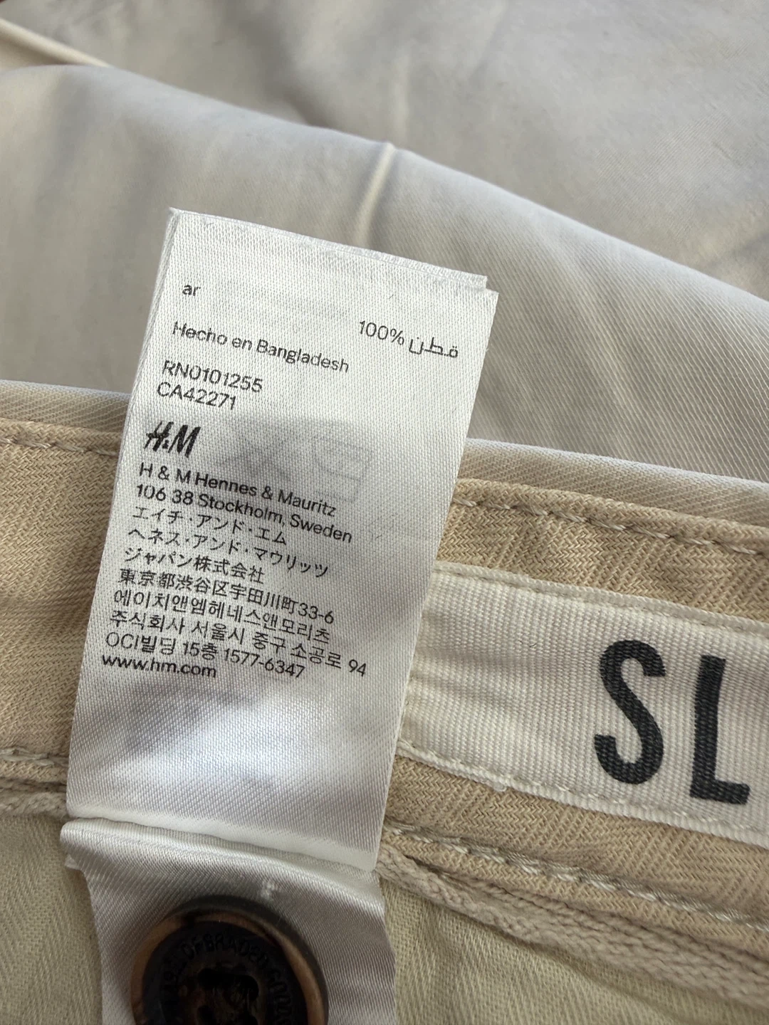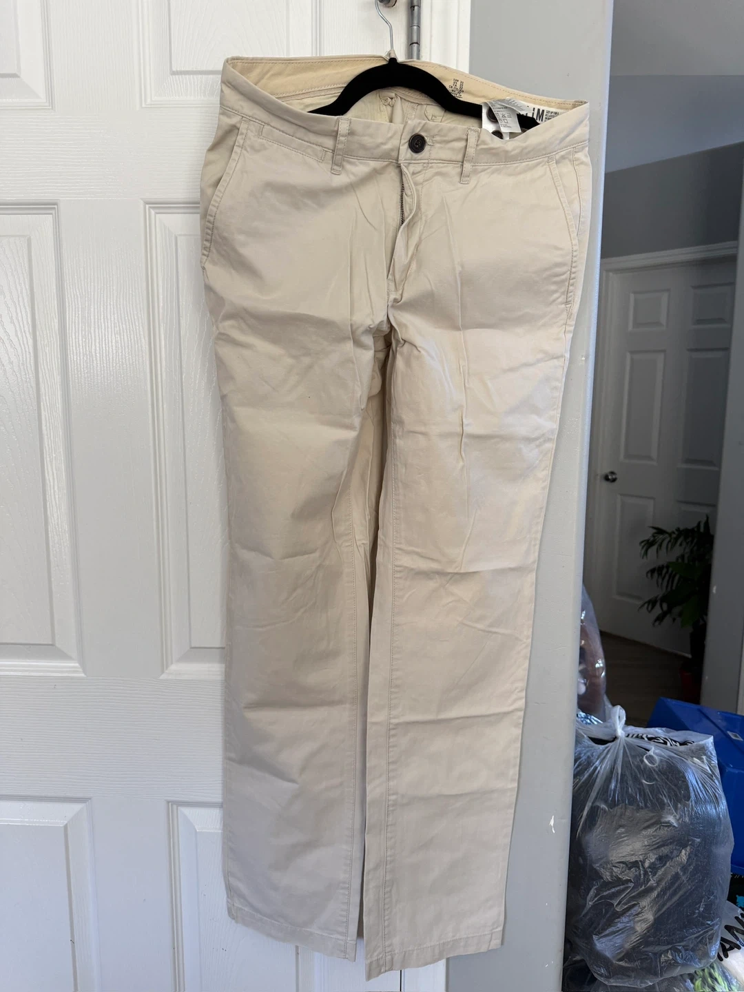 Selling a pair of H&M beige pants in size 32. They're in great condition and ready for a new home! Made in Bangladesh