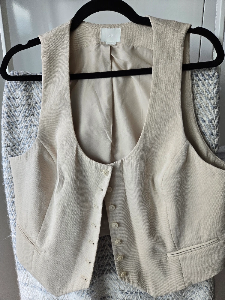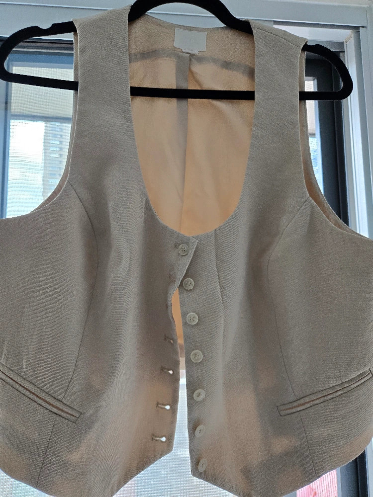 A stylish beige vest from H&M! This vest is perfect for layering and adding a touch of sophistication to any outfit. It features a classic button-down design and is made from a comfortable material. A great addition to your wardrobe!