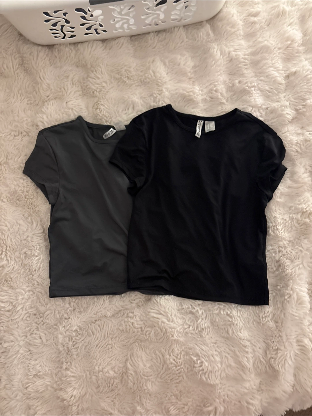Two cute and comfy T-shirts from H&M! One is black and the other is a dark grey. Both are size small and in great condition. Perfect for everyday wear! You can also buy separately for $5 each!
