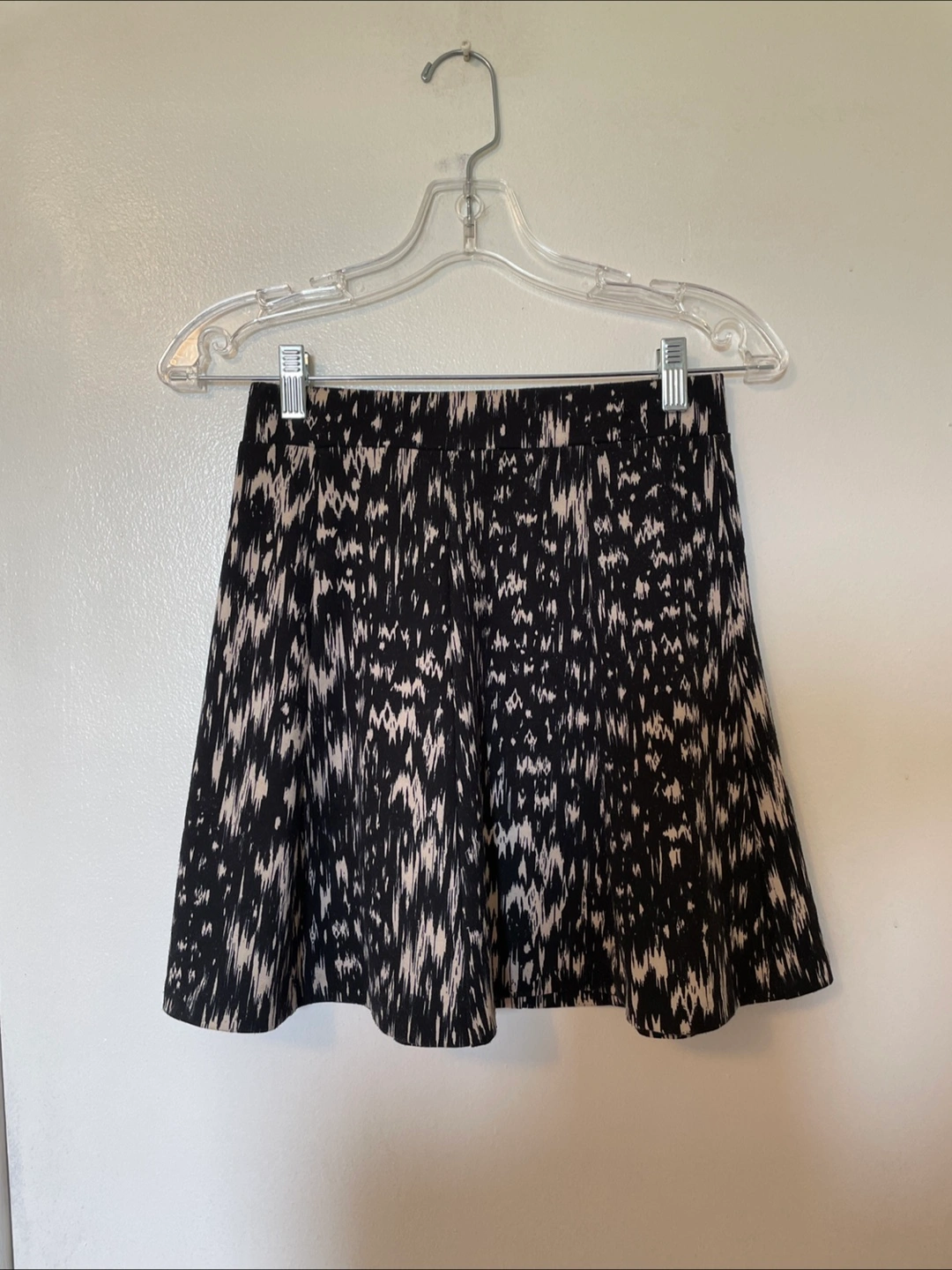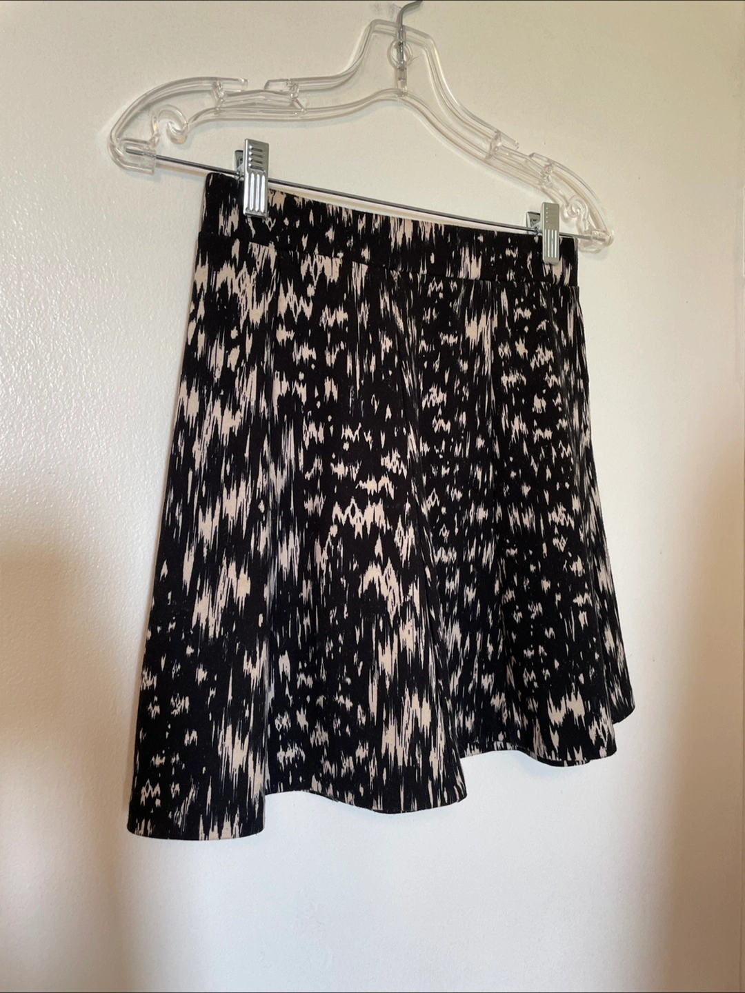 A stylish skirt with a fun pattern. Featuring a black and white design. You could easily wear this with many different tops.