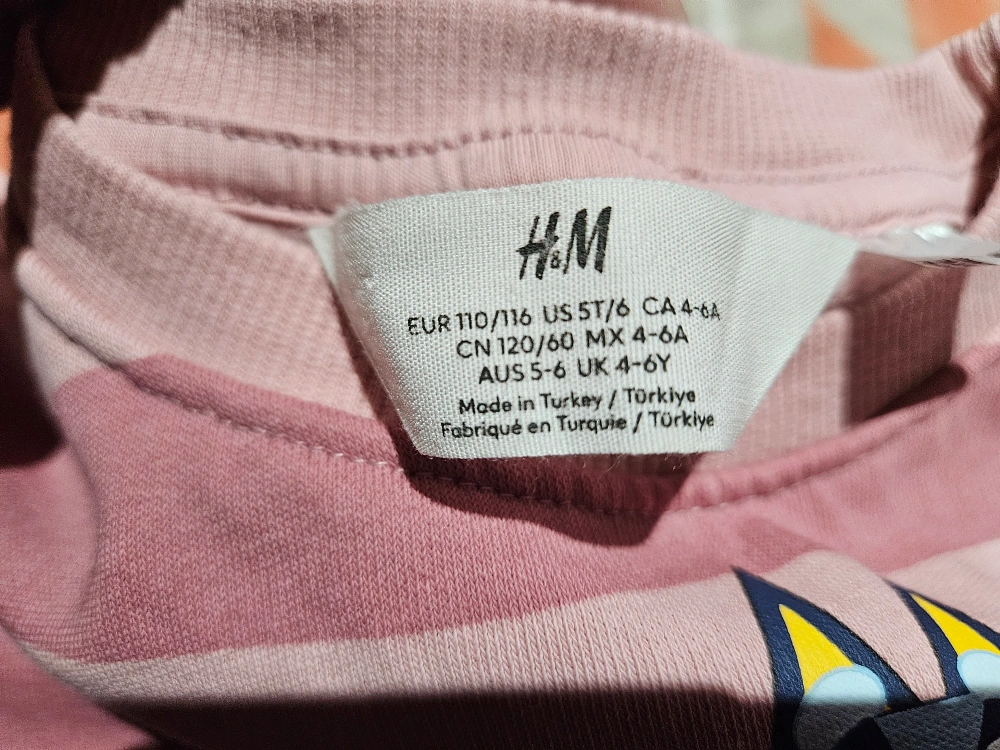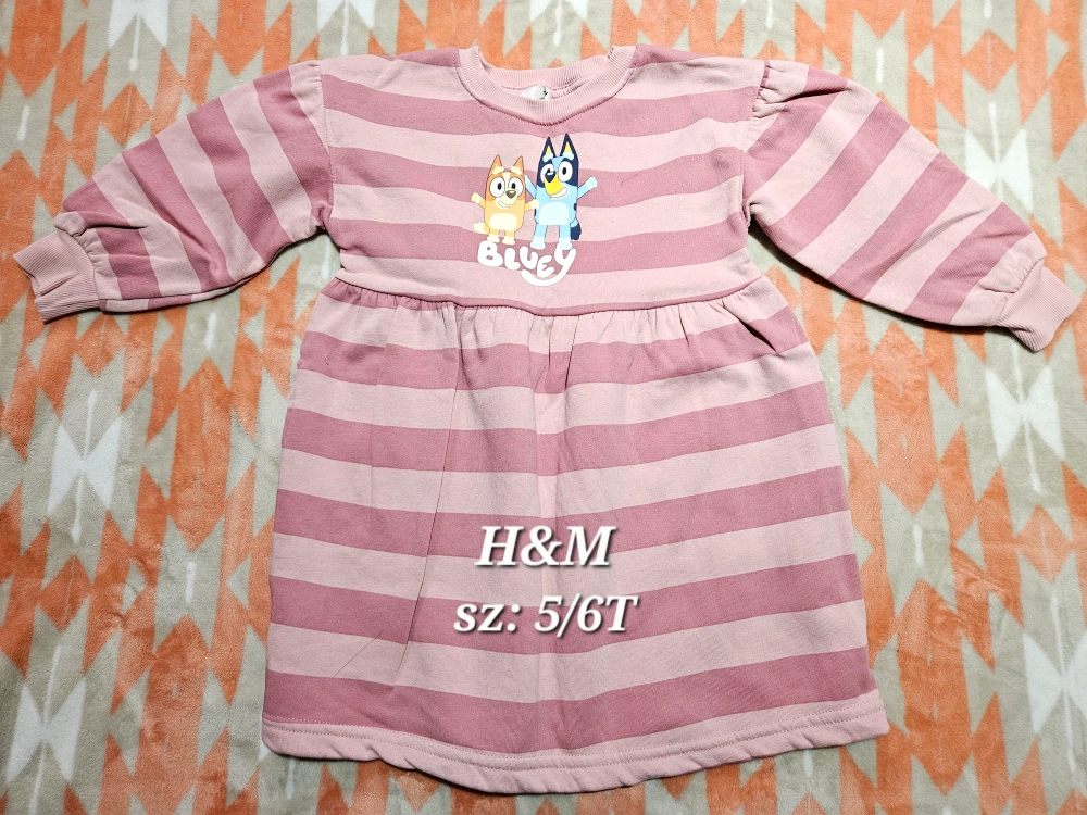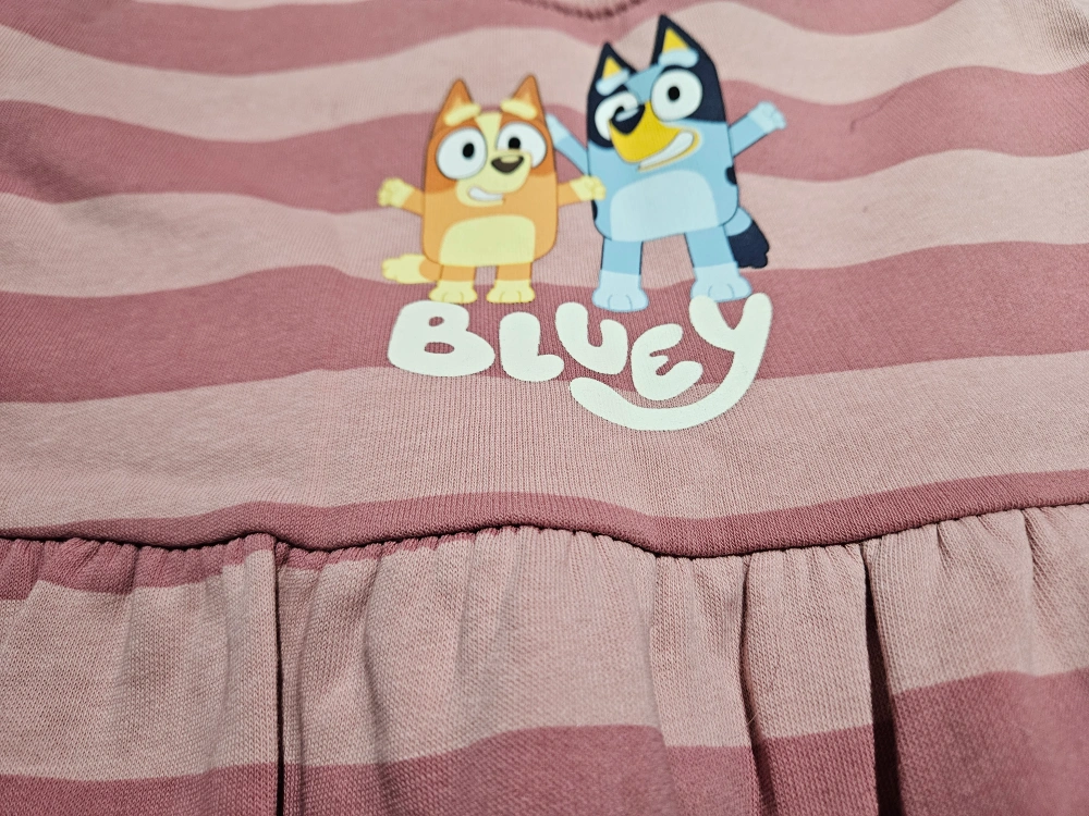 Super cute H&M dress featuring Bluey! It's a size 5/6T and has a lovely pink and mauve striped pattern. Perfect for any Bluey fan!