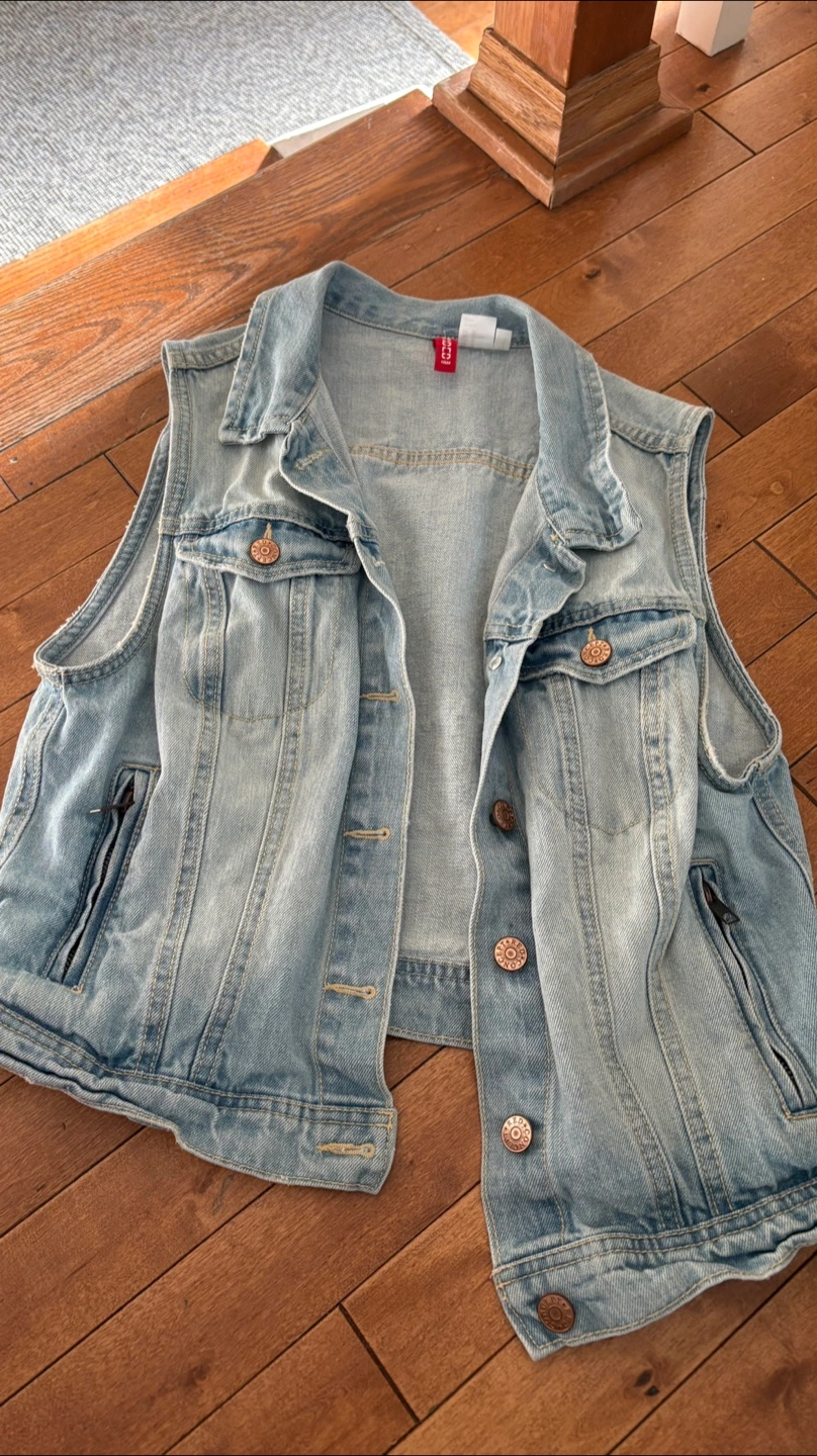 The vest has a light wash and a classic design that can be dressed up or down. A great addition to any wardrobe!