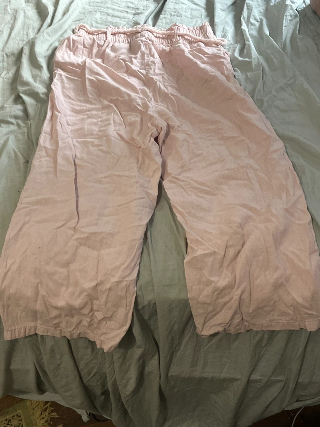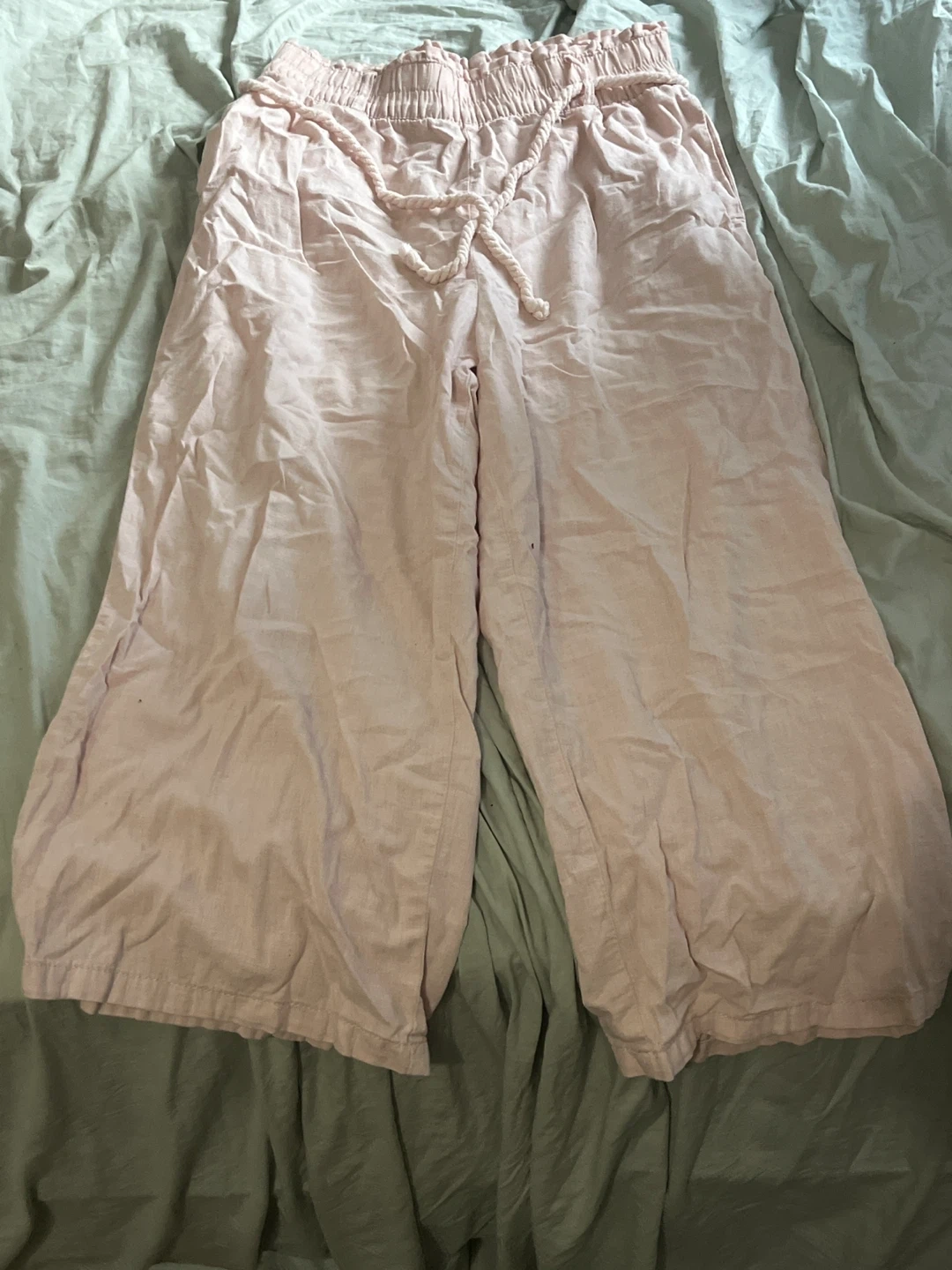 Selling a pair of H&M wide-leg pants in a lovely pink colour. They're made of 100% cotton and are super comfy. The size is US 10 / CA 10 / EUR 42. Perfect for a relaxed, casual look! Pickup Parkdale Toronto
