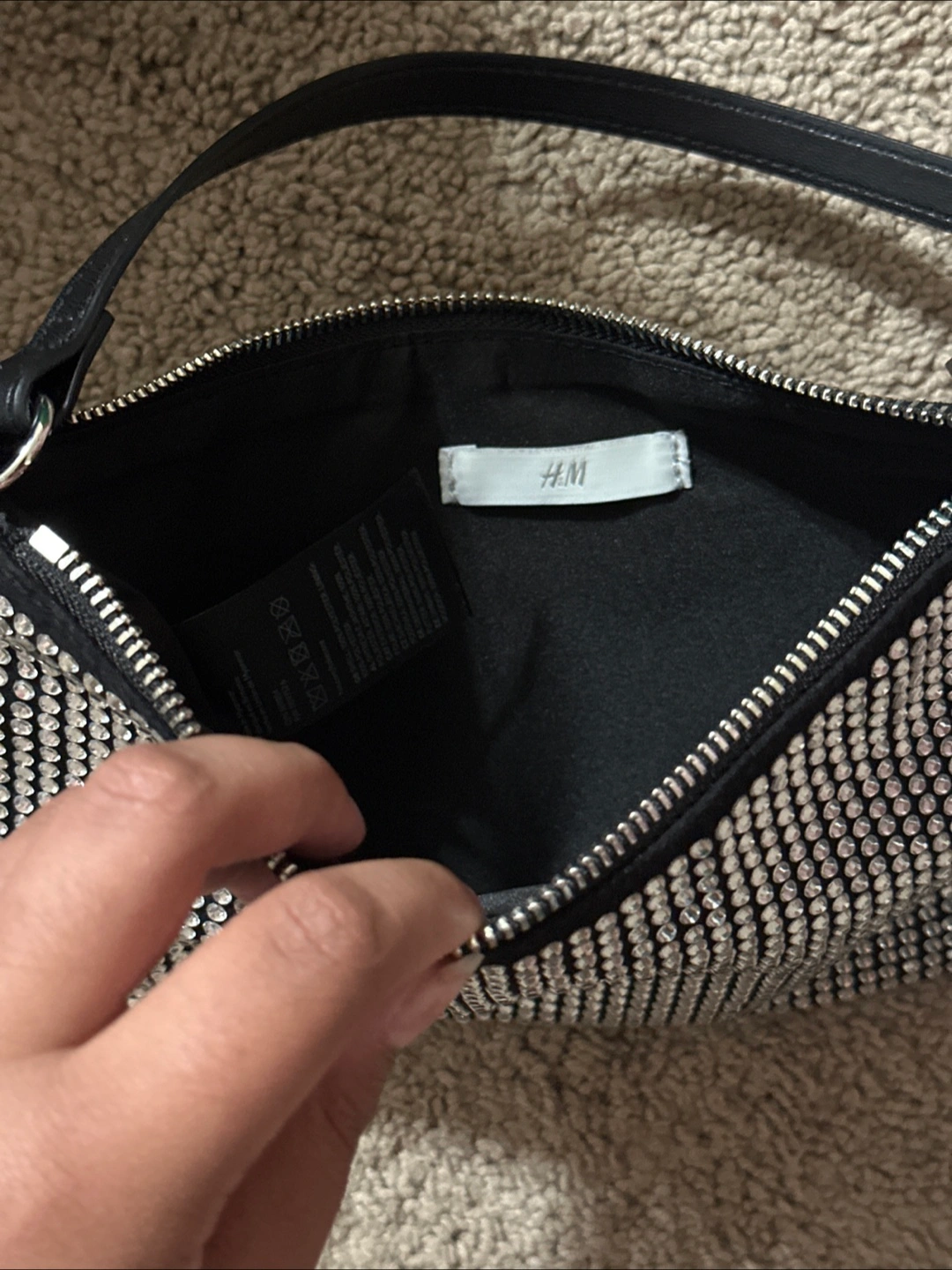 Cute H&M shoulder bag with a rhinestone exterior! Perfect for a night out or adding a bit of sparkle to your everyday look! It's in great condition and ready for a new home