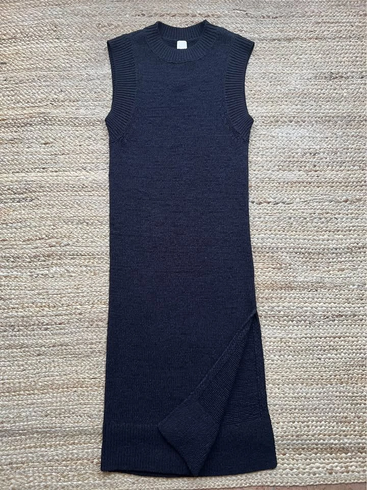 Size Small. New with tags! Classic knit midi dress by H&M. Black with a slit on the left side. New with tags!