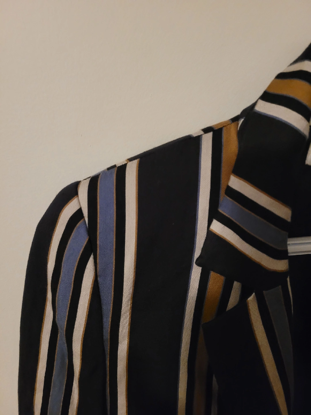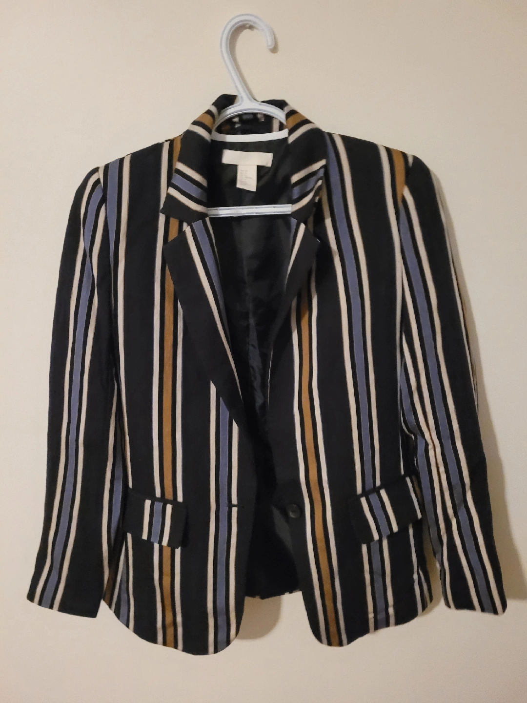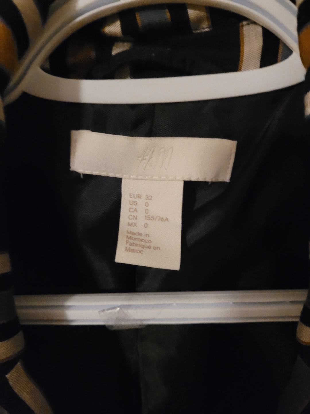 Stylish H&M blazer with a unique striped pattern! The blazer is in great condition and perfect for adding a touch of sophistication to any outfit. It's a size EUR 32. note: size equivalent to a small