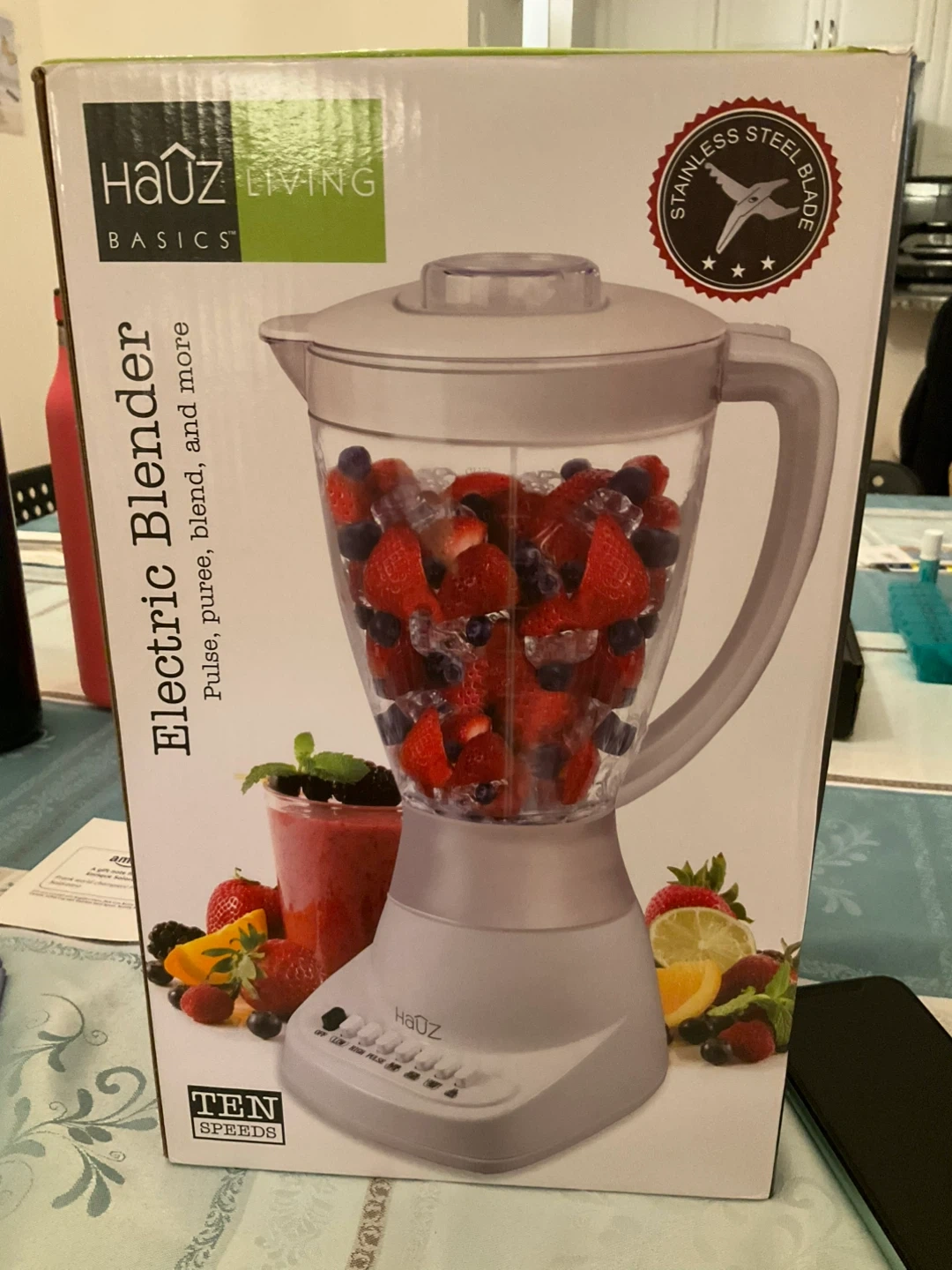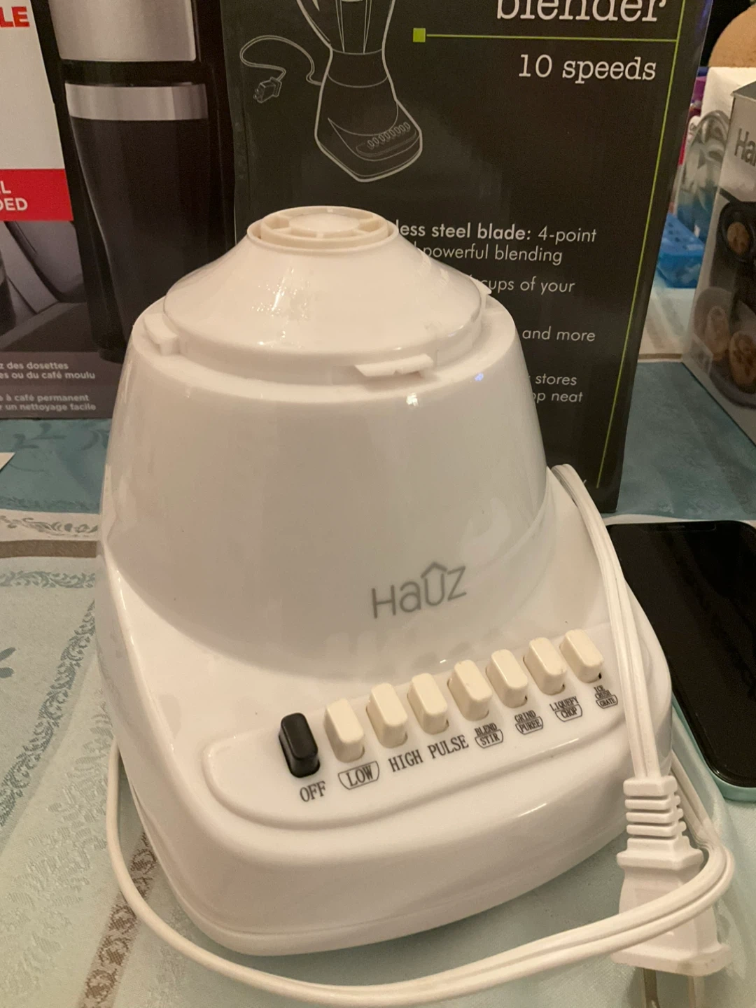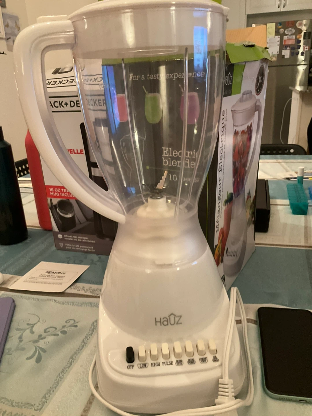 Selling a Häuz Basics electric blender in great condition! It features a durable stainless steel blade for powerful blending. The large jug can blend up to 6 cups of your favourite smoothie mixes. It has 10 speeds for pulsing, pureeing, and more on low or high speed. Plus, it has convenient cord storage to keep your counter neat