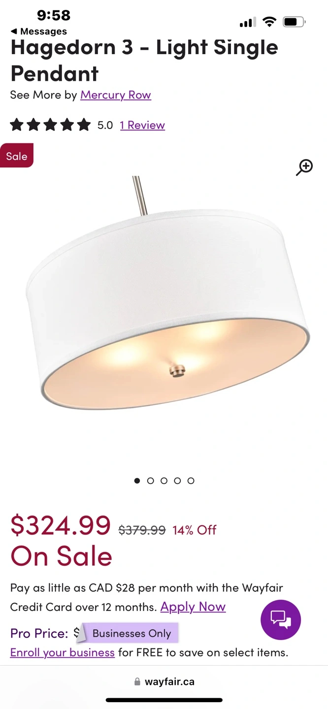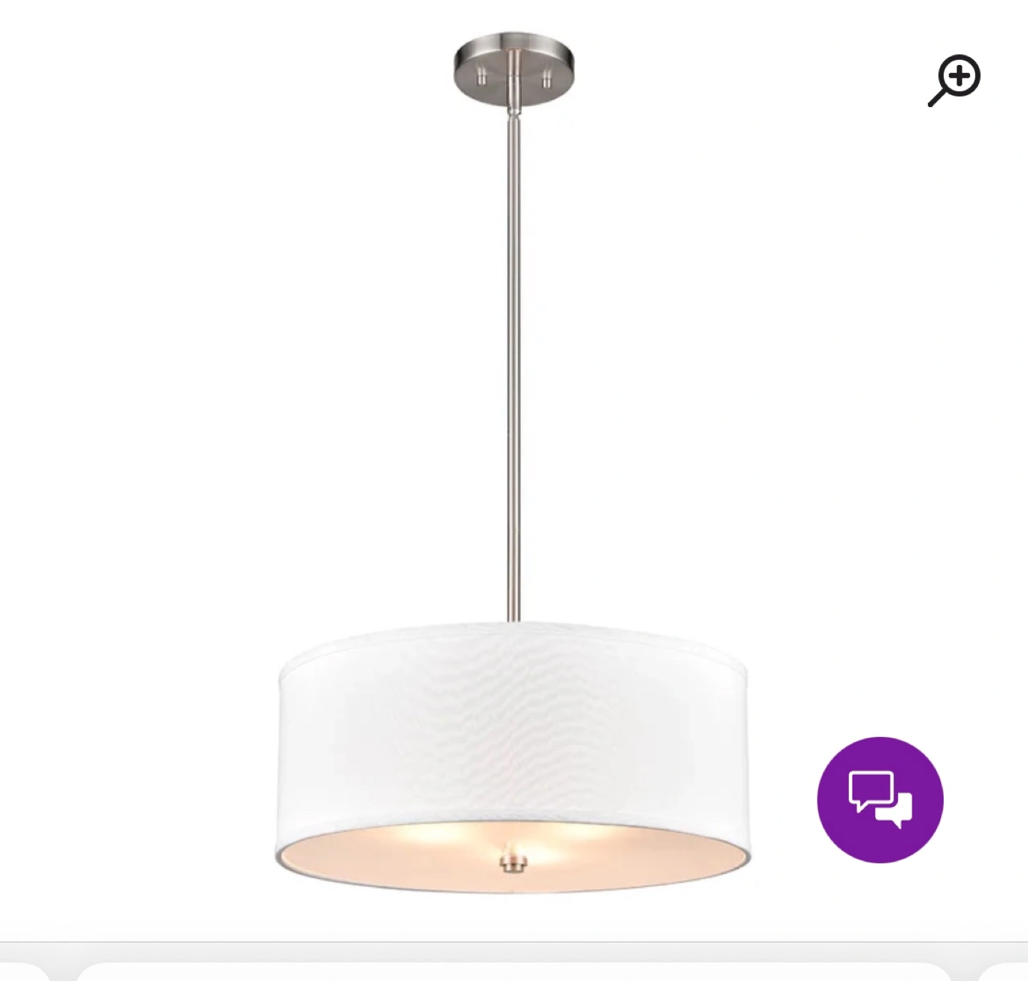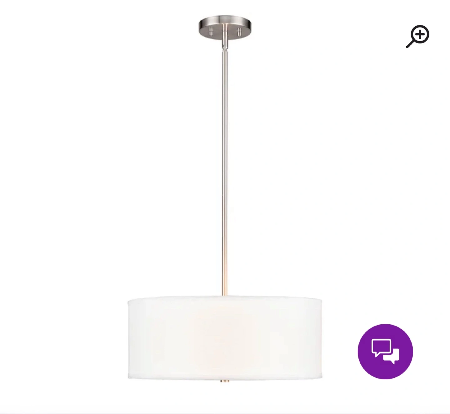 Modern pendant light fixture. Brushed nickel finish. White drum shade. Three lights. The one I have does not have such a long pole as in the picture Great for kitchens or dining rooms. Pickup area Bayview and Sheppard.
