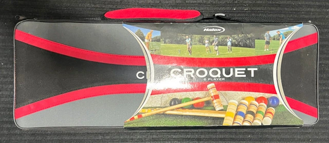 Get ready for some backyard fun with this Halex Croquet Set, designed for 6 players! This complete set is in used, but good condition, and includes everything you need for a classic game of croquet. Perfect for family gatherings, picnics, or a leisurely afternoon in the garden. * 6 mallets * 6 balls * 9 wickets * 2 stakes * Carrying case for easy storage and transport If the ad is up, the croquet set is ready for a new home.