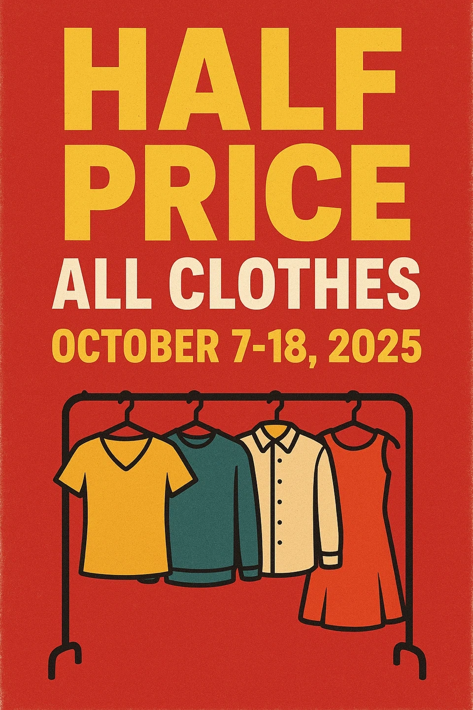 Half Price All Clothes - October 7-18, 2025