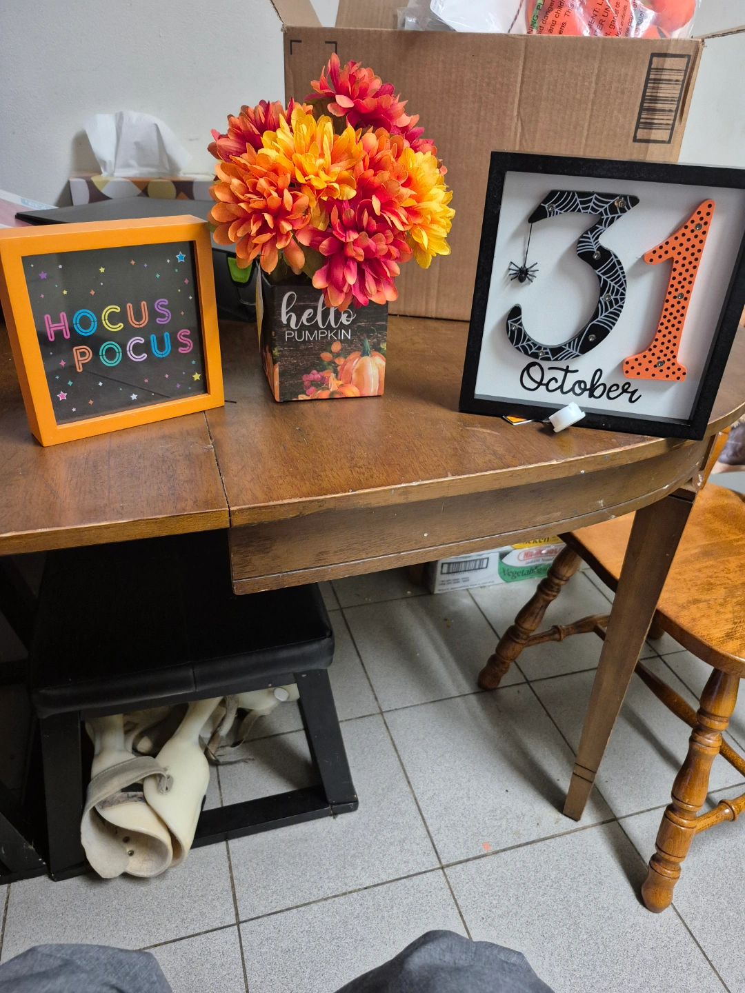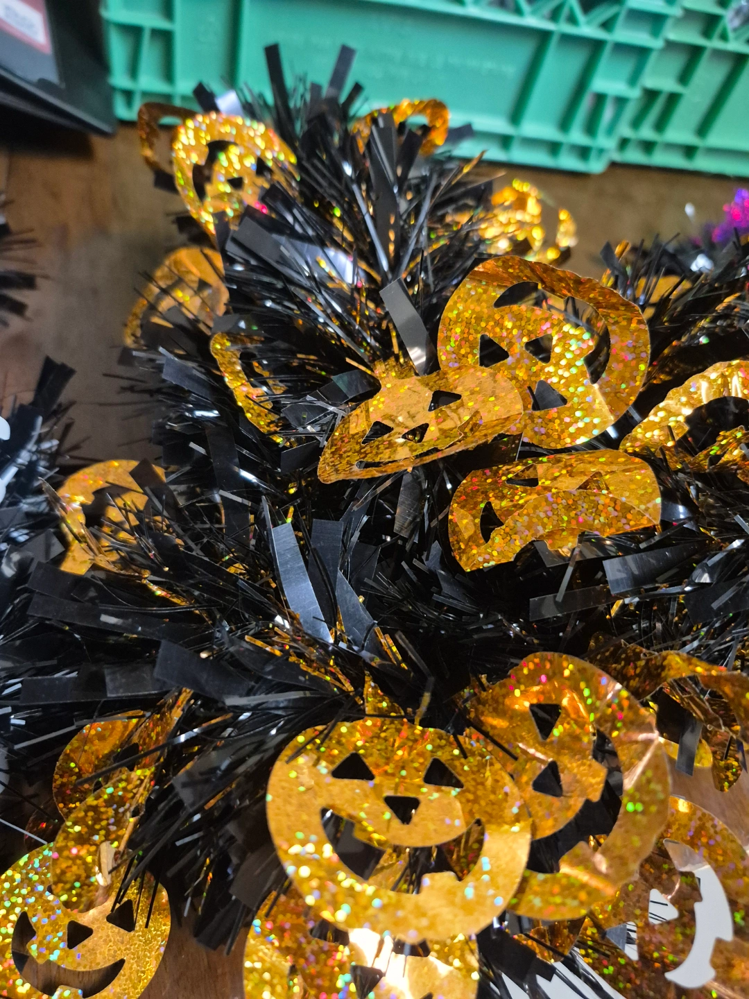 multiple kinds of garland $1.50 each or discount for bulk order decorative cobwebs with spiders $2 each or discount for bulk orders multiple wall and window decals $1.50 each or discount for bulk order 48 reusable Halloween treat bags $1 each or $40 for all door banner $10 photo opportunity Frankenstein backdrop $10 2 light up frames $5 each skull floral decor $5 80+ glow sticks $1 each or $60 for all 80+ faux flowers $1 for 2 or $60 for all children costumes and accessories available $5 each pick up downtown Windsor smoke free pet free home