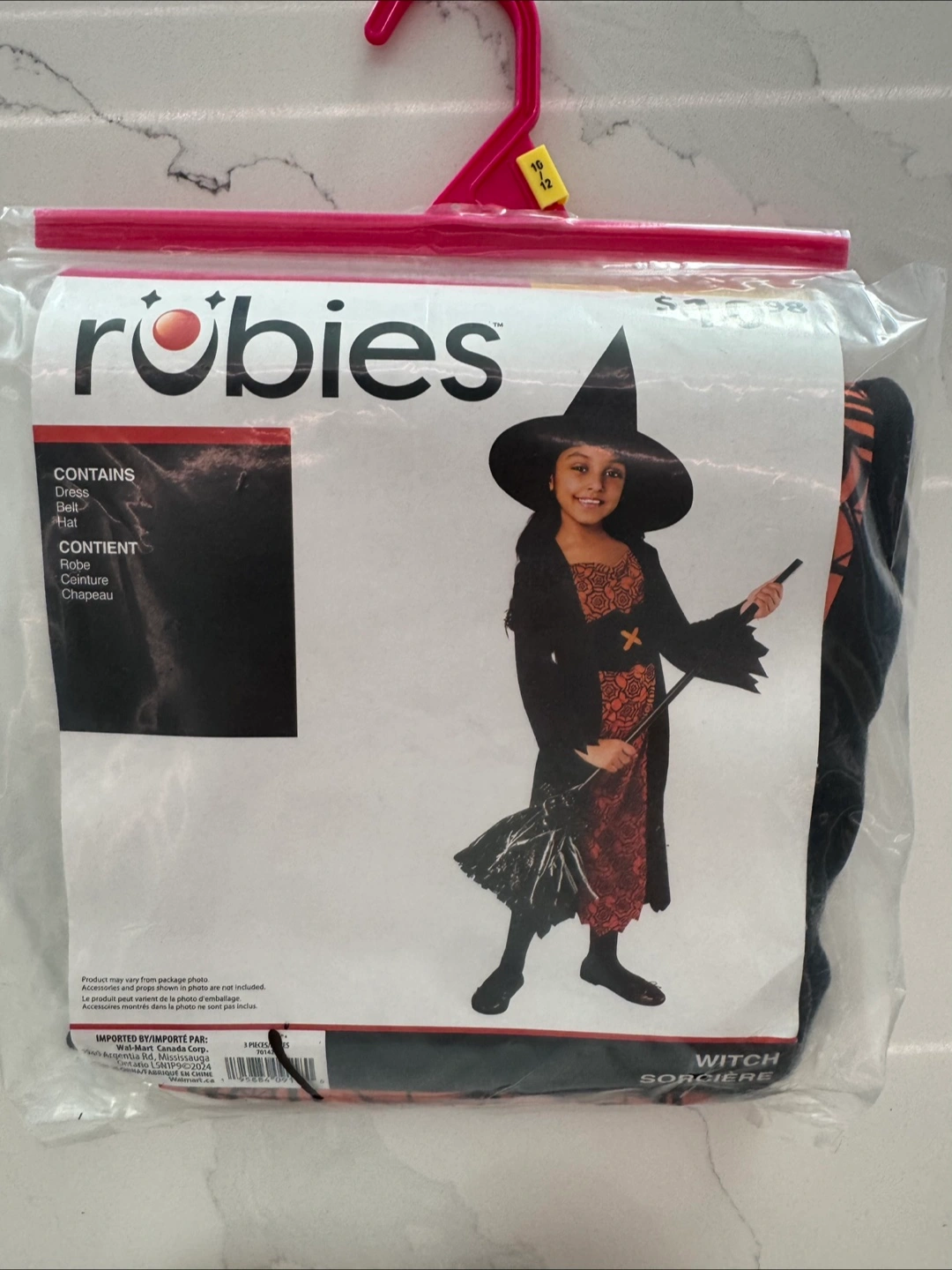HALLOWEEN COSTUME- GIRLS LG WITCH DRESS & HAT SIZE LARGE (10-12) BRAND NEW INCLUDE: DRESS, BELT, HAT PICKUP IN COURTICE NEAR HWY 2 AND COURTICE RD all sales are final