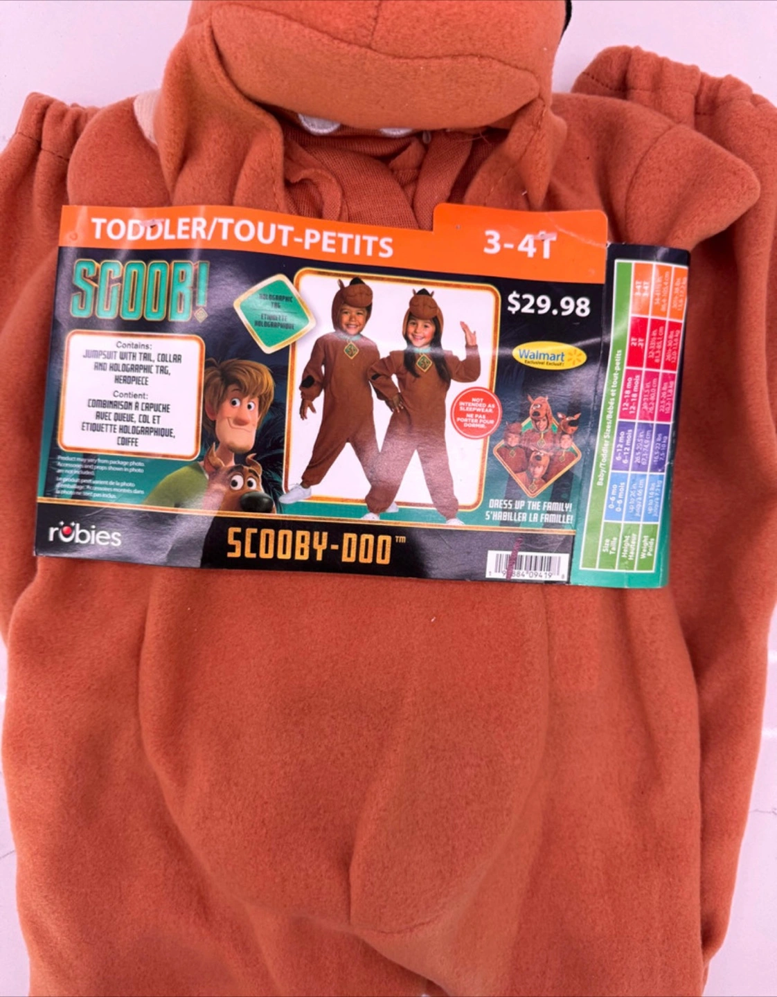 HALLOWEEN COSTUME- TODDLER 3-4T SCOOBY-DOO BRAND NEW jumpsuit with tail, collar and holographic tag, headpiece PICKUP IN COURTICE NEAR HWY 2 AND COURITCE RD all sales are final