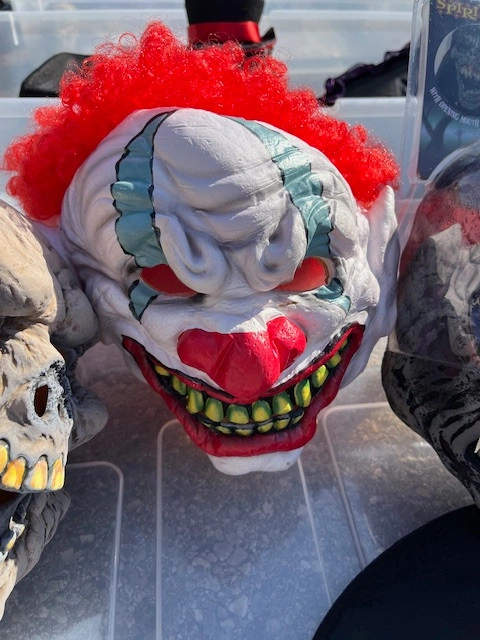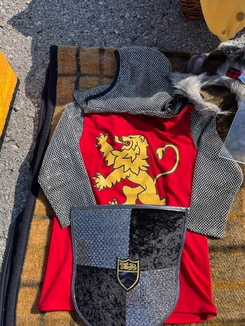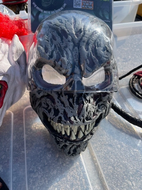 Various costumes for kids and adults. Toddler Giraffe $15 Child Knight $15 Adult Robe $10 Clown Mask Foam $15 Venom Mask Foam $20 Zombie Rubber $20