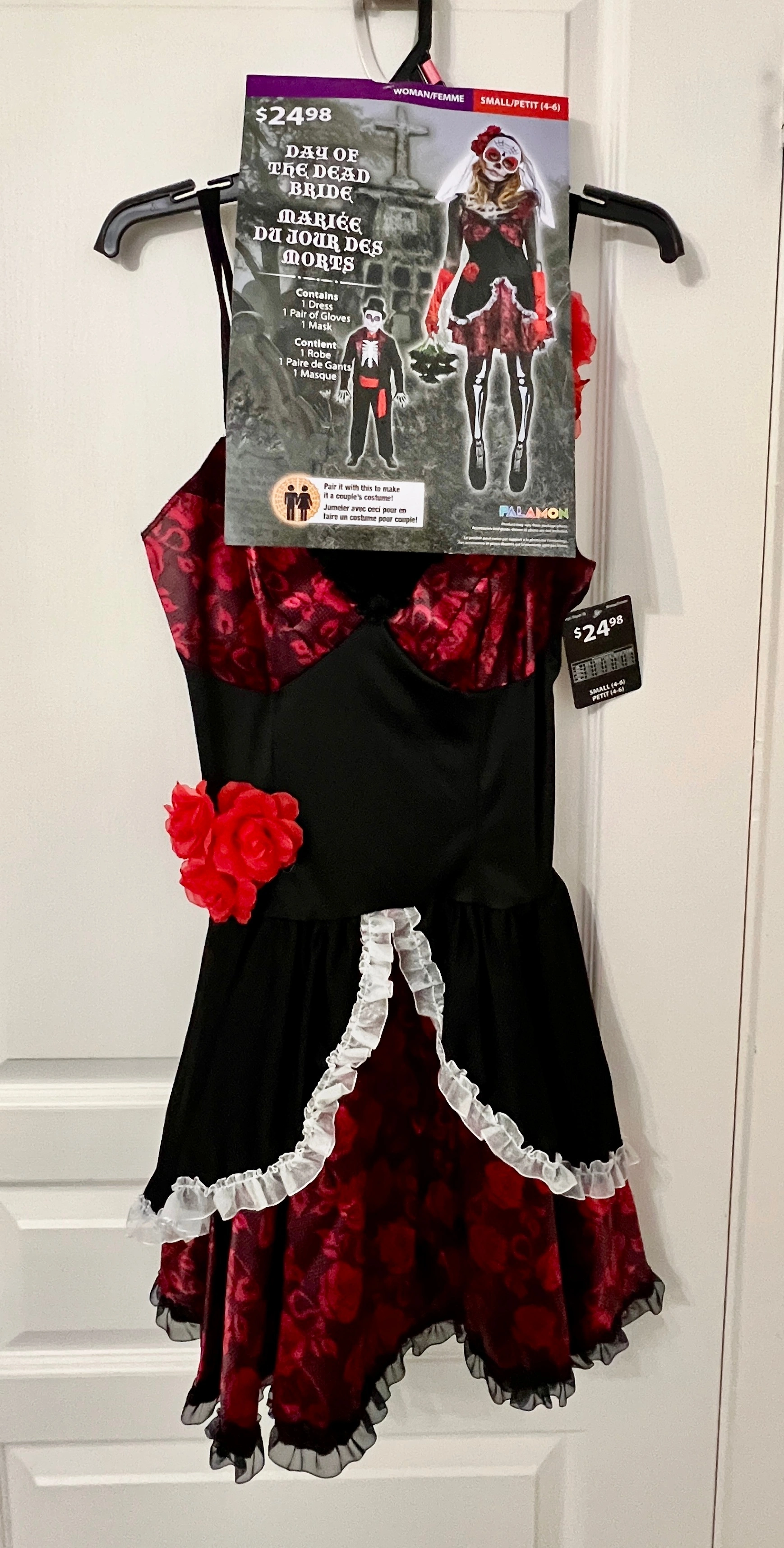 Brand New (Except Captain America) โ€” perfect for Halloween parties or cosplay! ๐Ÿ‘ธ Warrior Princess (Adult Small 4-6) โ€“ $15.00 Includes dress + headpiece. Shimmery gold and black warrior-style look! ๐Ÿ’€ Day of the Dead Bride (Adult Small 4-6) โ€“ $15.00 Dress, gloves & mask included. Elegant red & black lace with roses ๐ŸŒน ๐Ÿคต Day of the Dead Groom (Adult Medium 32-34) โ€“ $15.00 Jacket, shirt, bowtie, gloves & mask. Great matching coupleโ€™s costume! ๐Ÿฆธโ€โ™‚๏ธ Captain America โ€“ Civil War - USED Only Once (Adult Large) โ€“ $15.00 Official Marvel! Padded muscle shirt + mask. ๐Ÿ“ Pickup: Markham