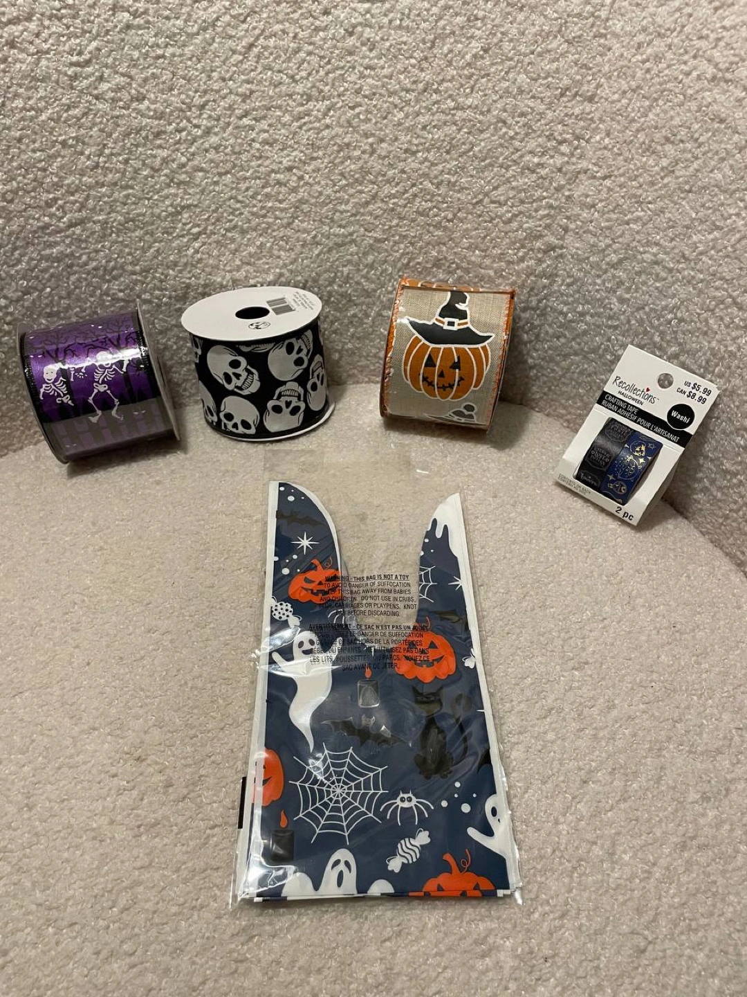 Get ready for Halloween crafting with this fun set! Includes various rolls of Halloween-themed crafting ribbon and a matching treat bag. Perfect for adding a spooky touch to your decorations and gifts!