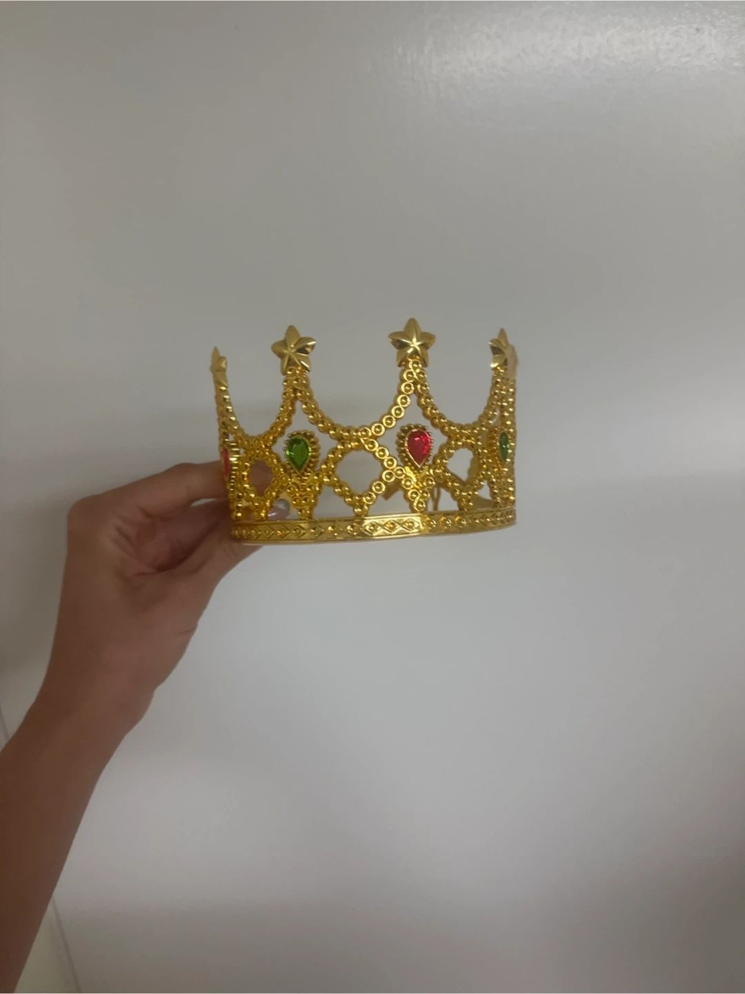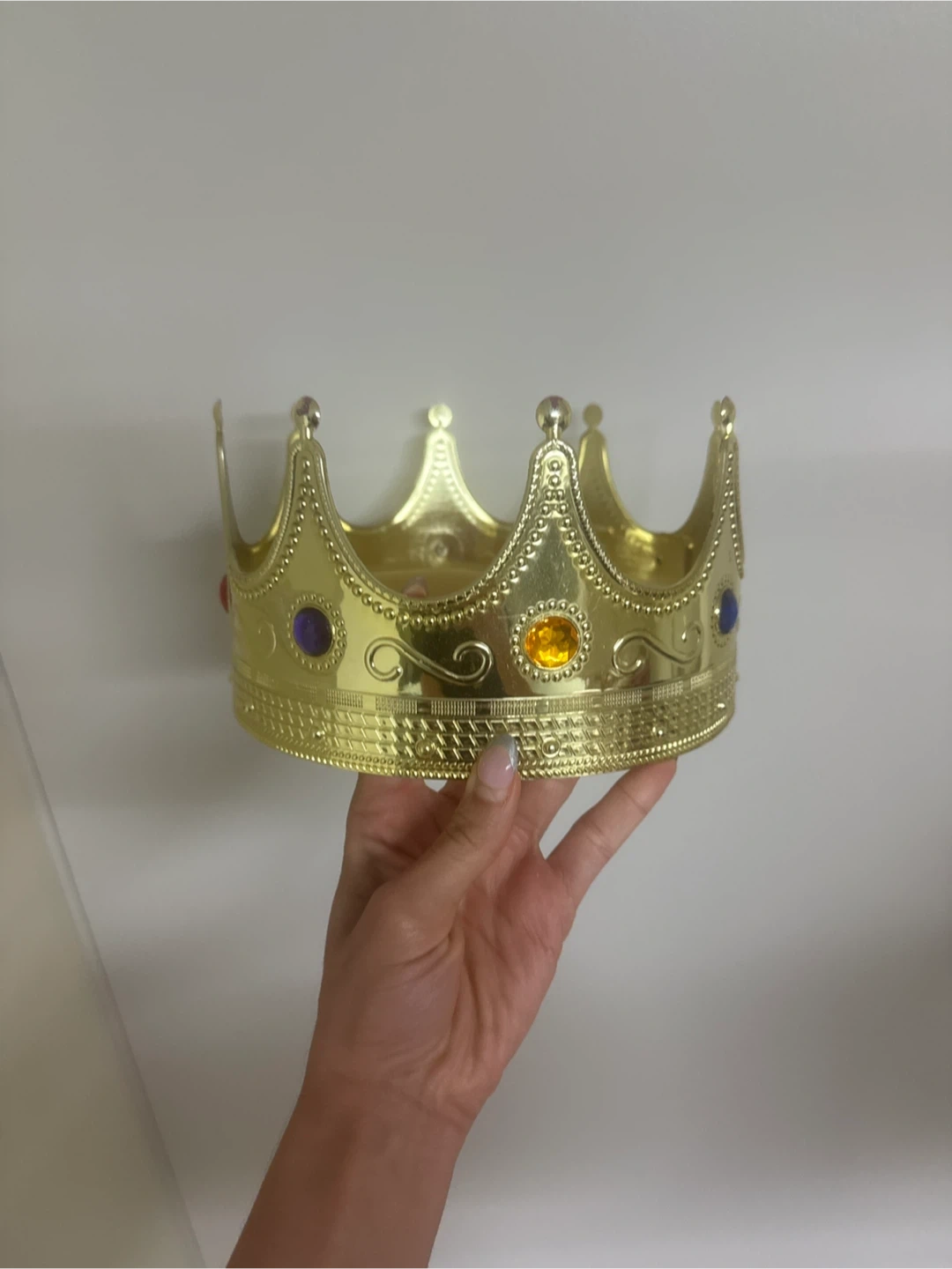 Selling a gold coloured crown! It has some colourful gems on it. Perfect for a costume or just for fun!