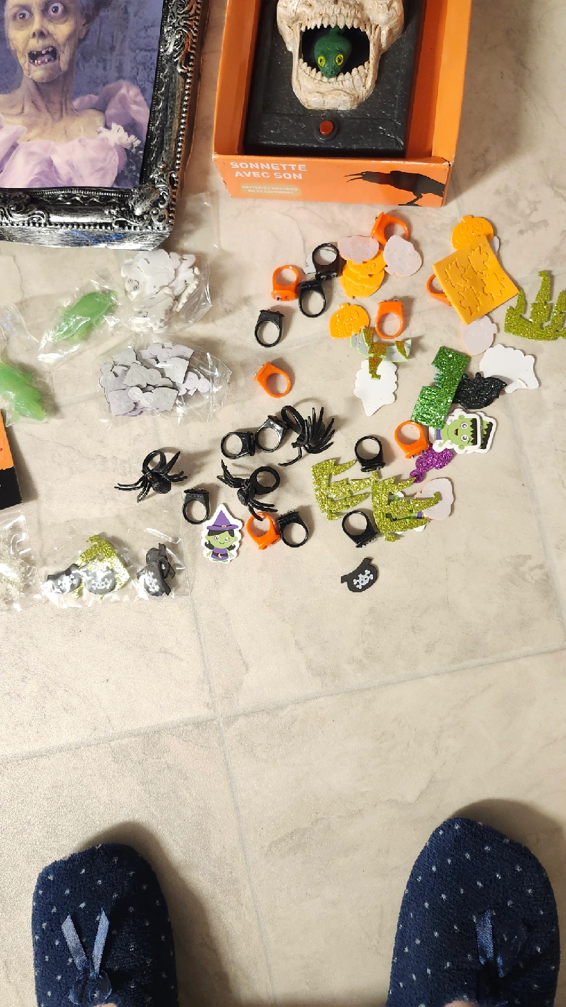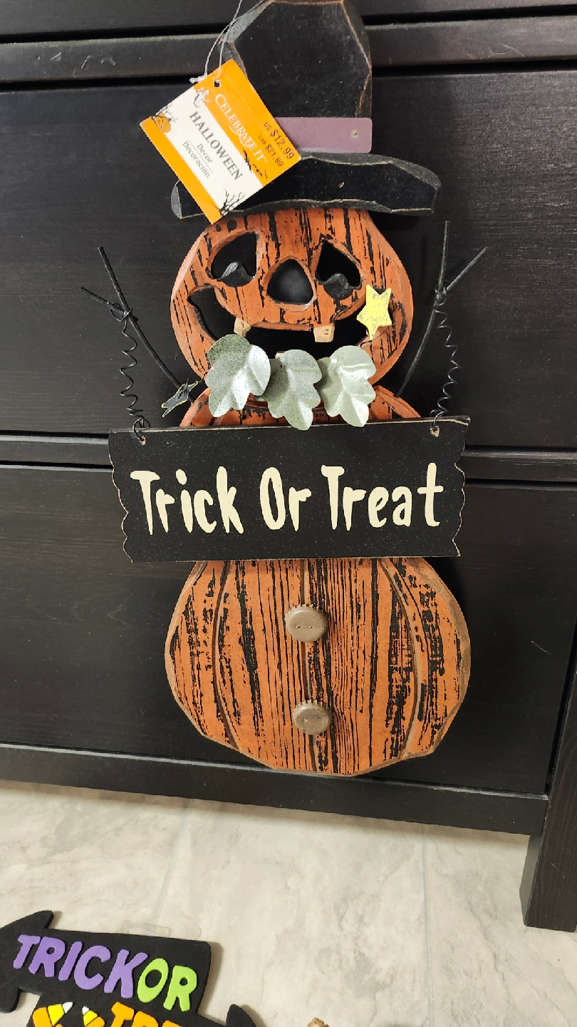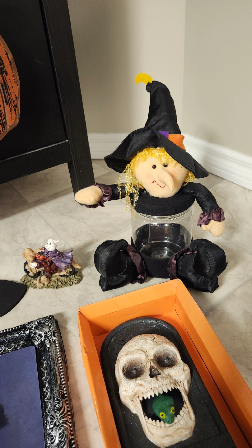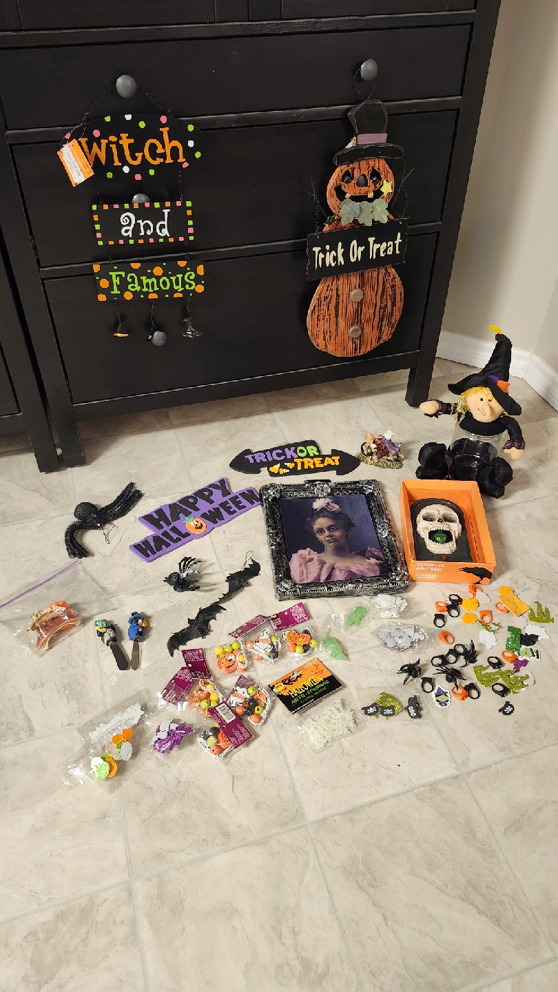 Selling a Halloween decor lot with various items including wall signs, figurines, and decorative pieces. Perfect for adding some spooky fun to your home this Halloween season! mostly new or like new. Picture changes depending on how you look at it...see pics.
