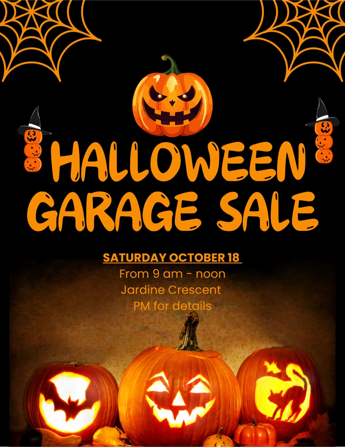 Get spooked at our Halloween Garage Sale! 👻 Find costumes, wigs, masks, and tons of decorations this Saturday, Oct 18, from 9 am to 12 pm. Cash or e-transfer accepted. Private message me for the address!