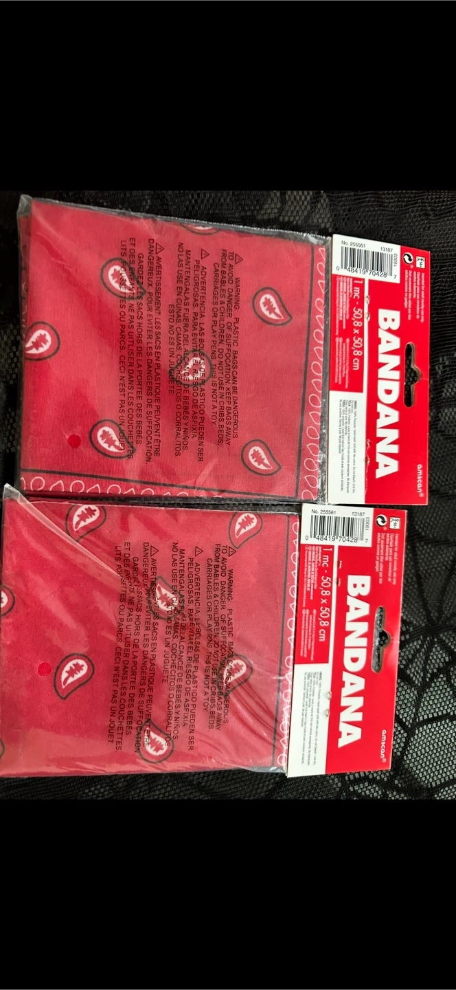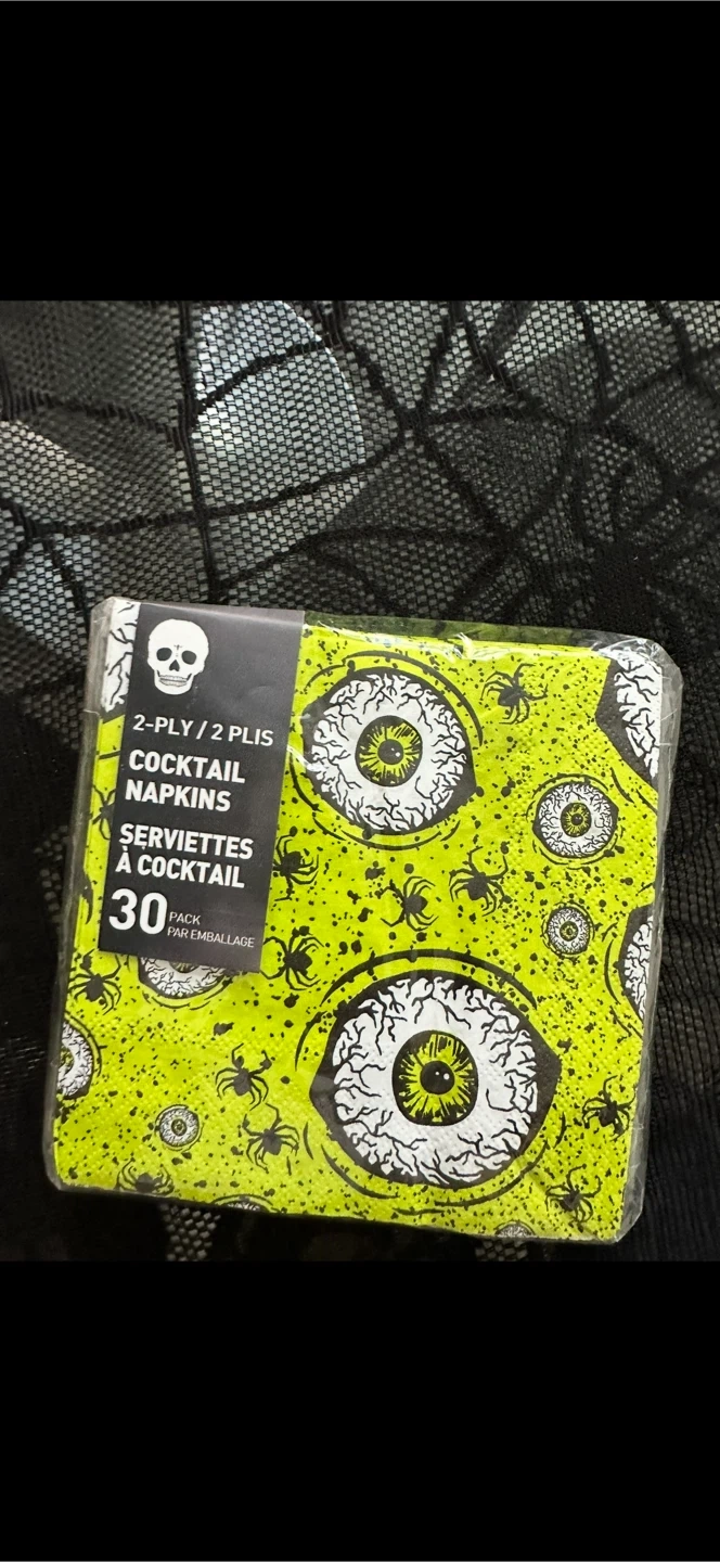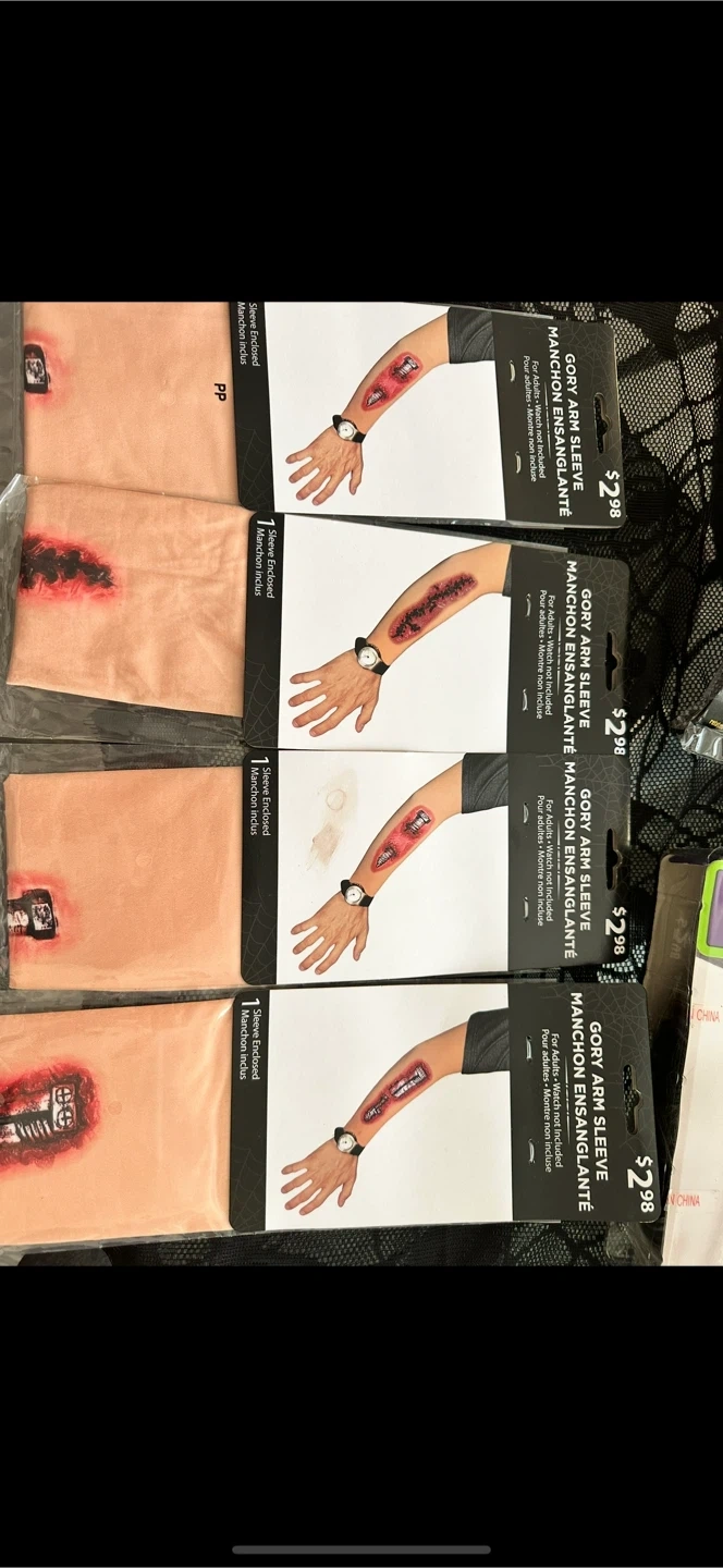 Bag full of brand new Halloween goodies. Halloween napkins, 2 red bandanas, pack of candy bags, 2 sets of face paintings, 1 pack of special effects adhesive and remover, 1 pack of Halloween night shade cover, 4 gory arm sleeves tattoos. All brand new never opened. All 12 items are for $15 must take all or if only wanted 1 or 2 let me know I can see how much I can do it for