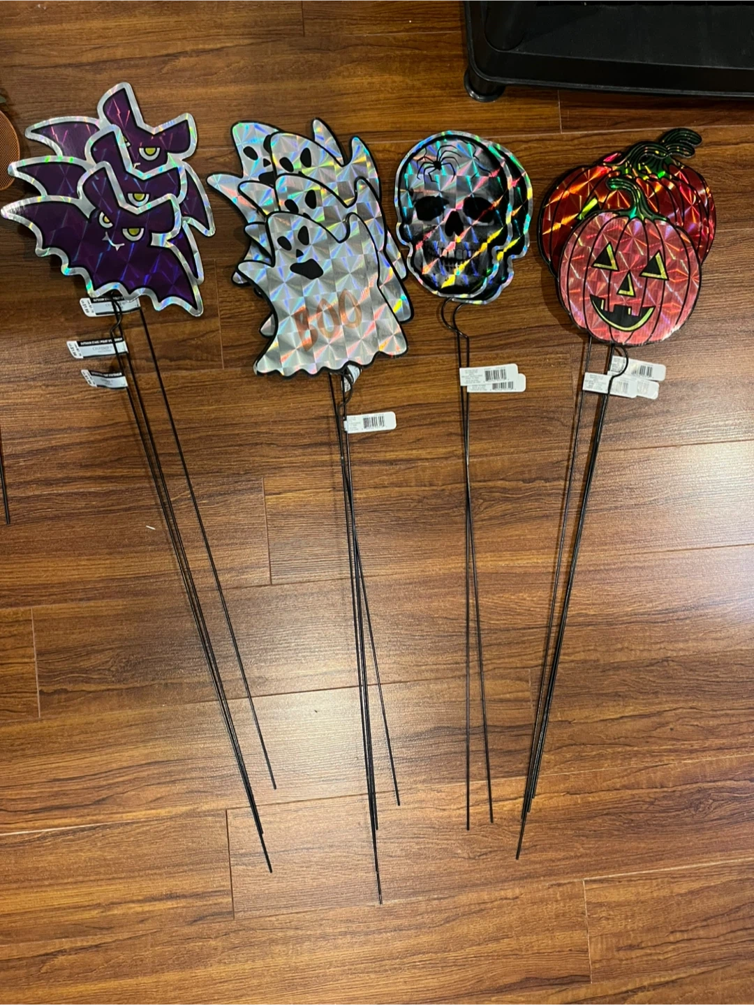 All brand new. 13 halographic ones, 4 small wired stakes, and 1 large ghost wired stake. Must take all.