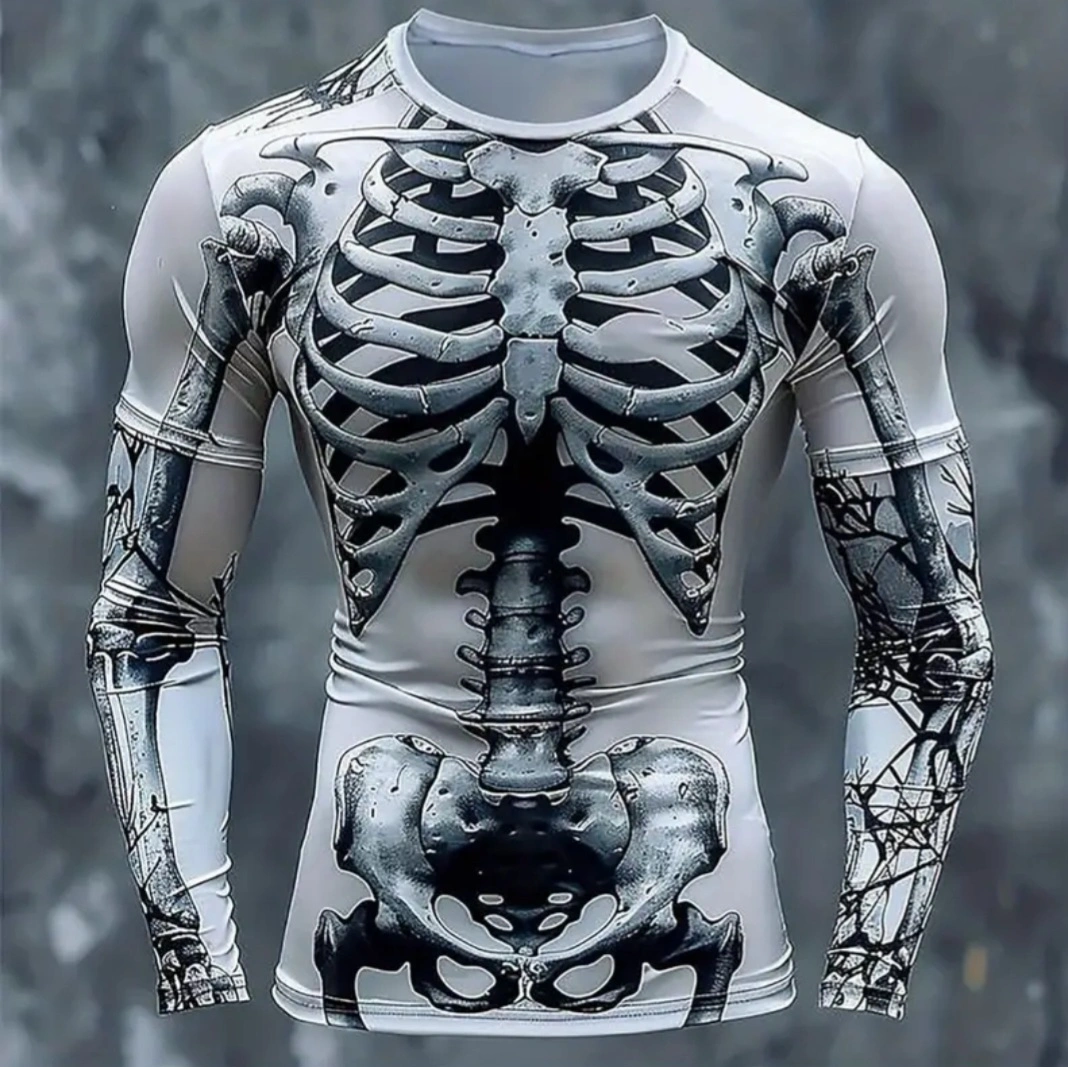 Men's Long-sleeved shirt with a skeleton print .New, never worn.